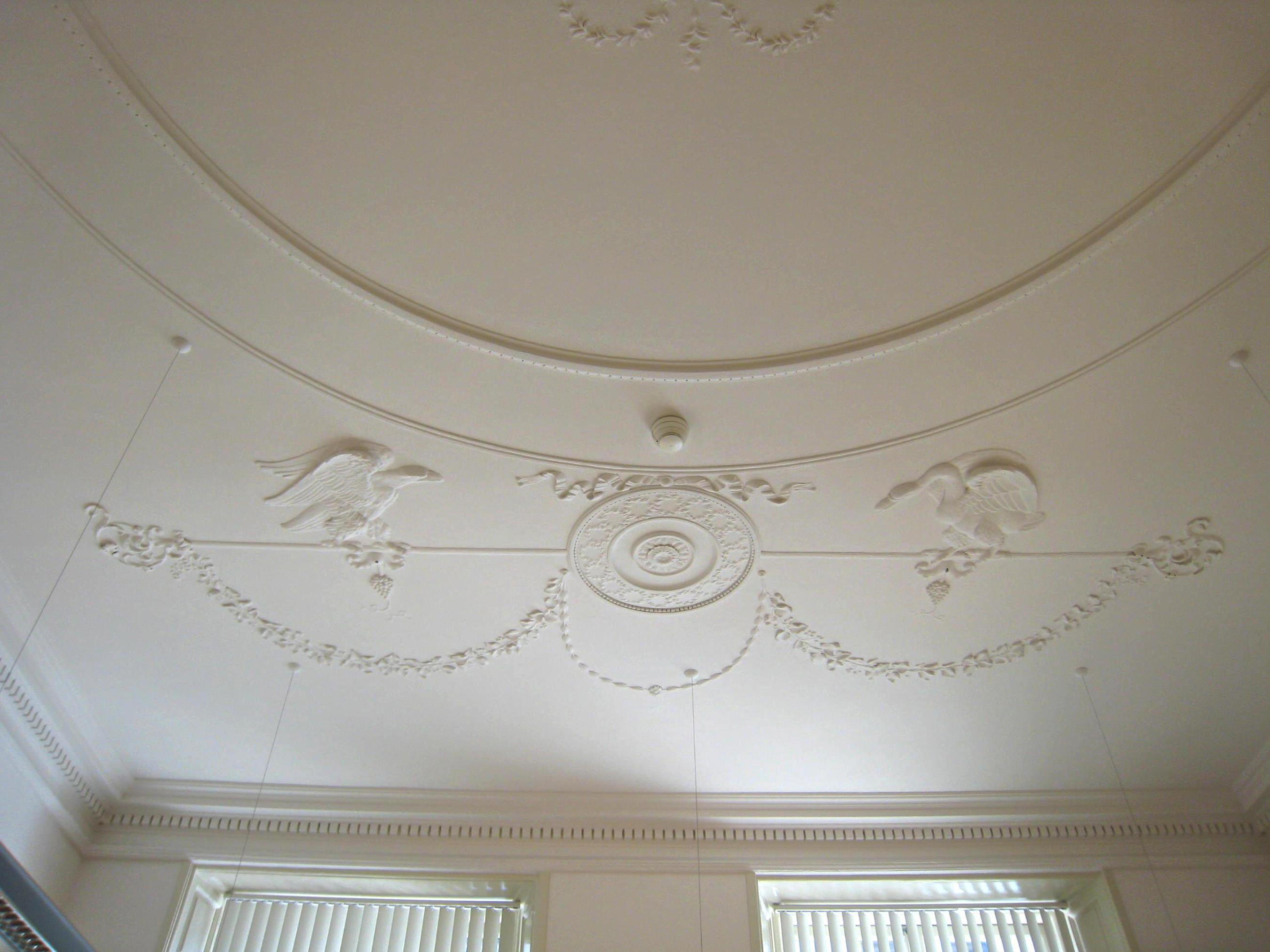 Pand met gevel in Lodewijk XIV stijl met natuurstenen plint en versierde middenpartij, interieurs in dezelfde stijl.