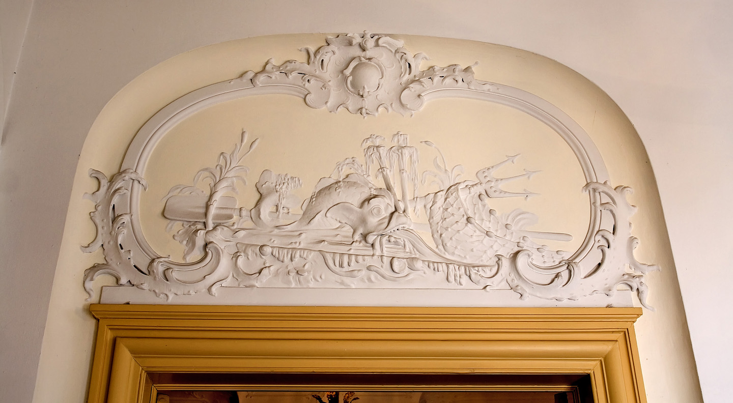 Pand, oorspronkelijk een geheel met de nrs 15 en 16, gebouwd als paleis van de Friese Stadhouders door Pieter de Swart - rococo-interieurs.