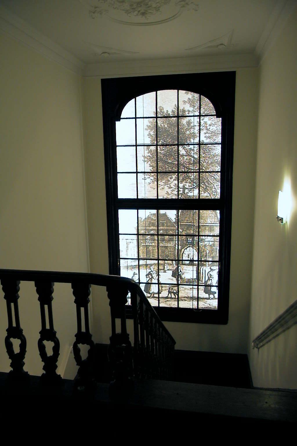 Pand met bakstenen gevel in Lodewijk XIV stijl, interieur in dezelfde trant.