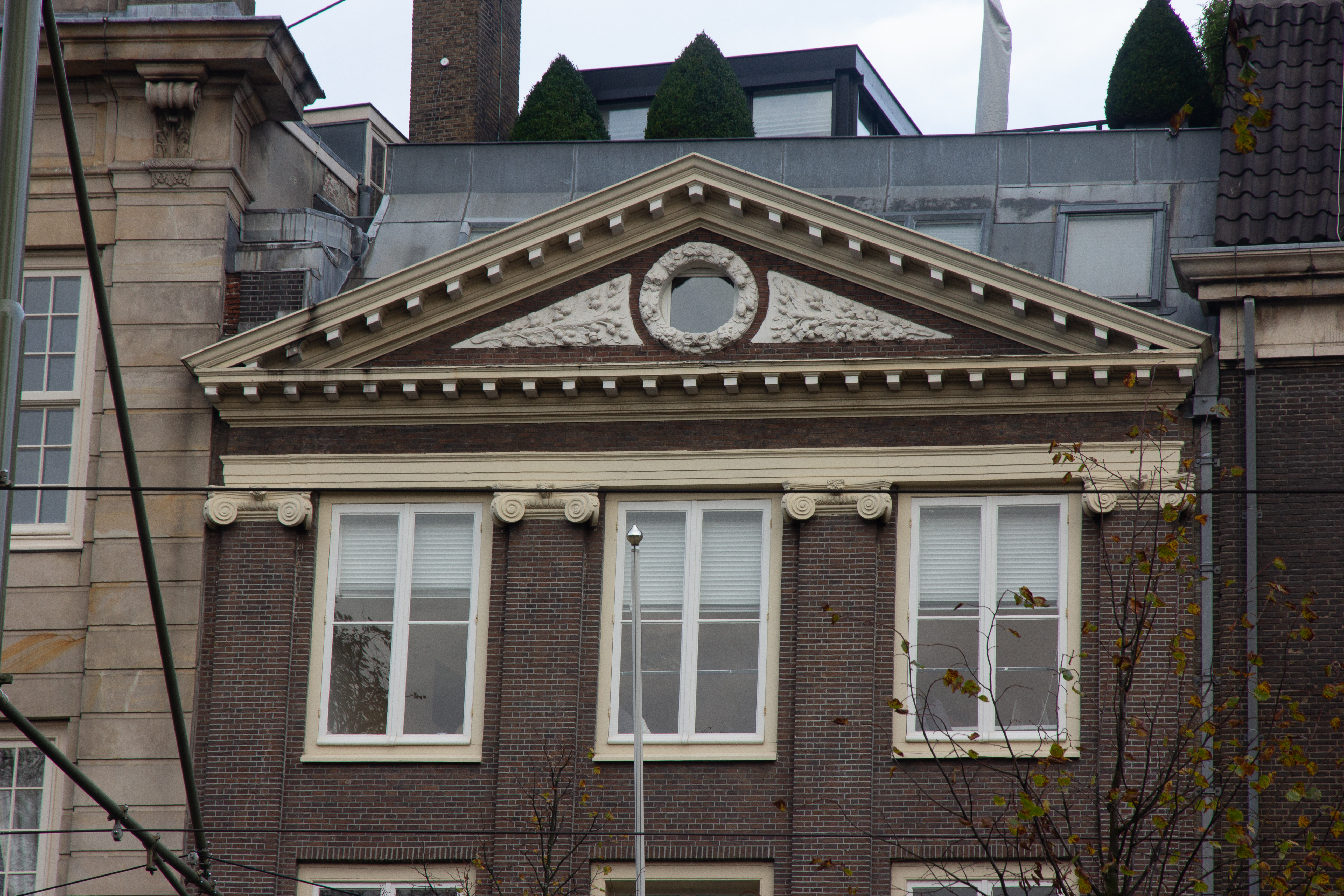 Pand met pilastergevel uit het midden van de 17e eeuw, onderpui gewijzigd.