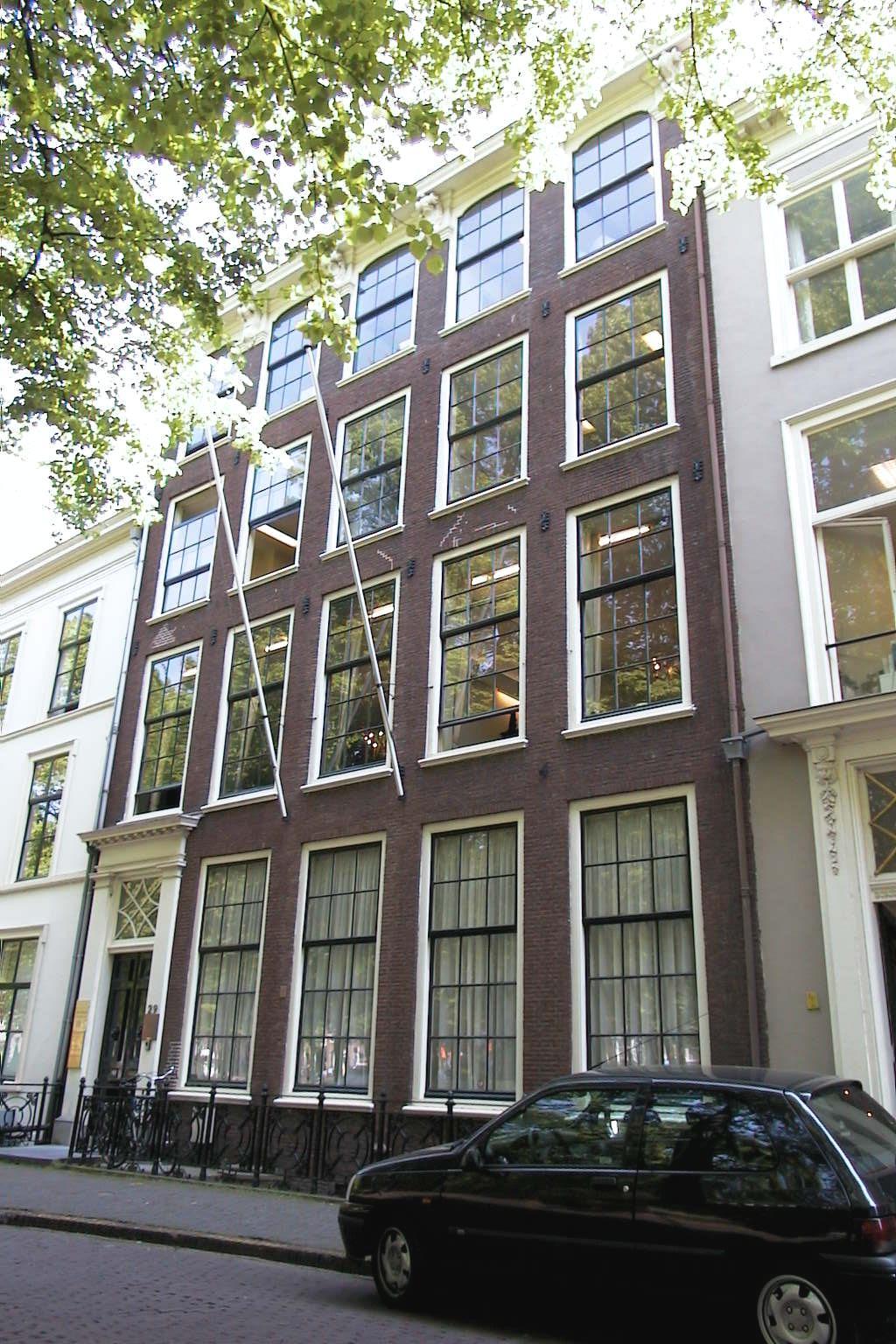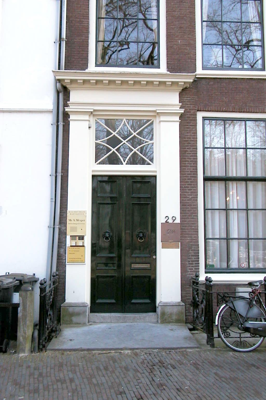 Pand met bakstenen gevel met kroonlijst op Lodewijk XIV consoles.