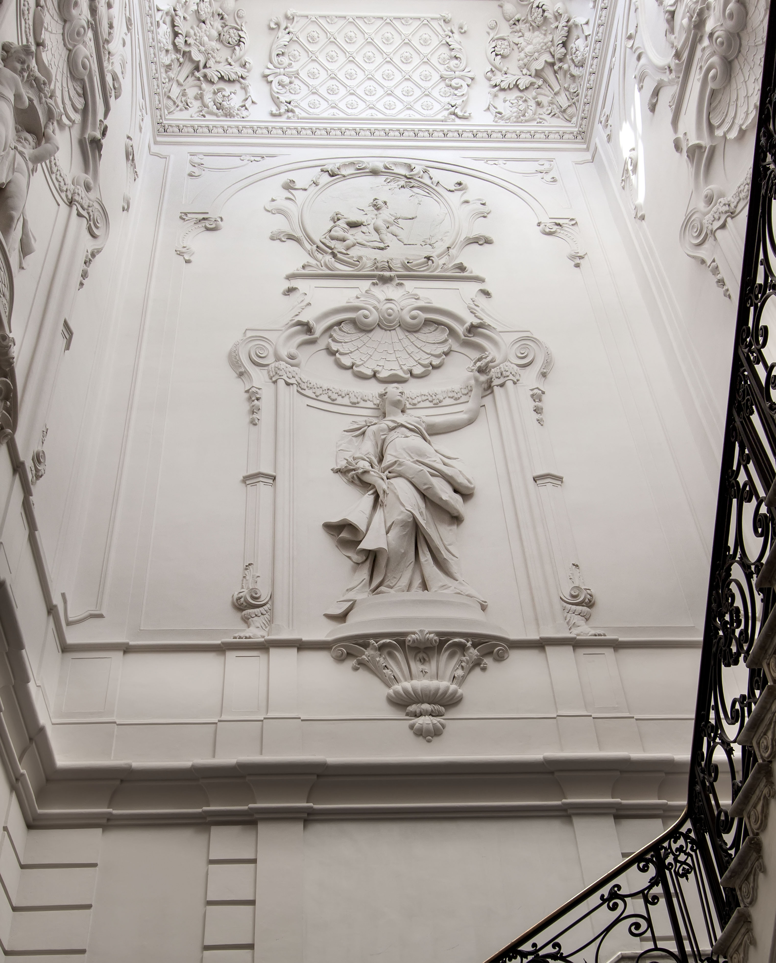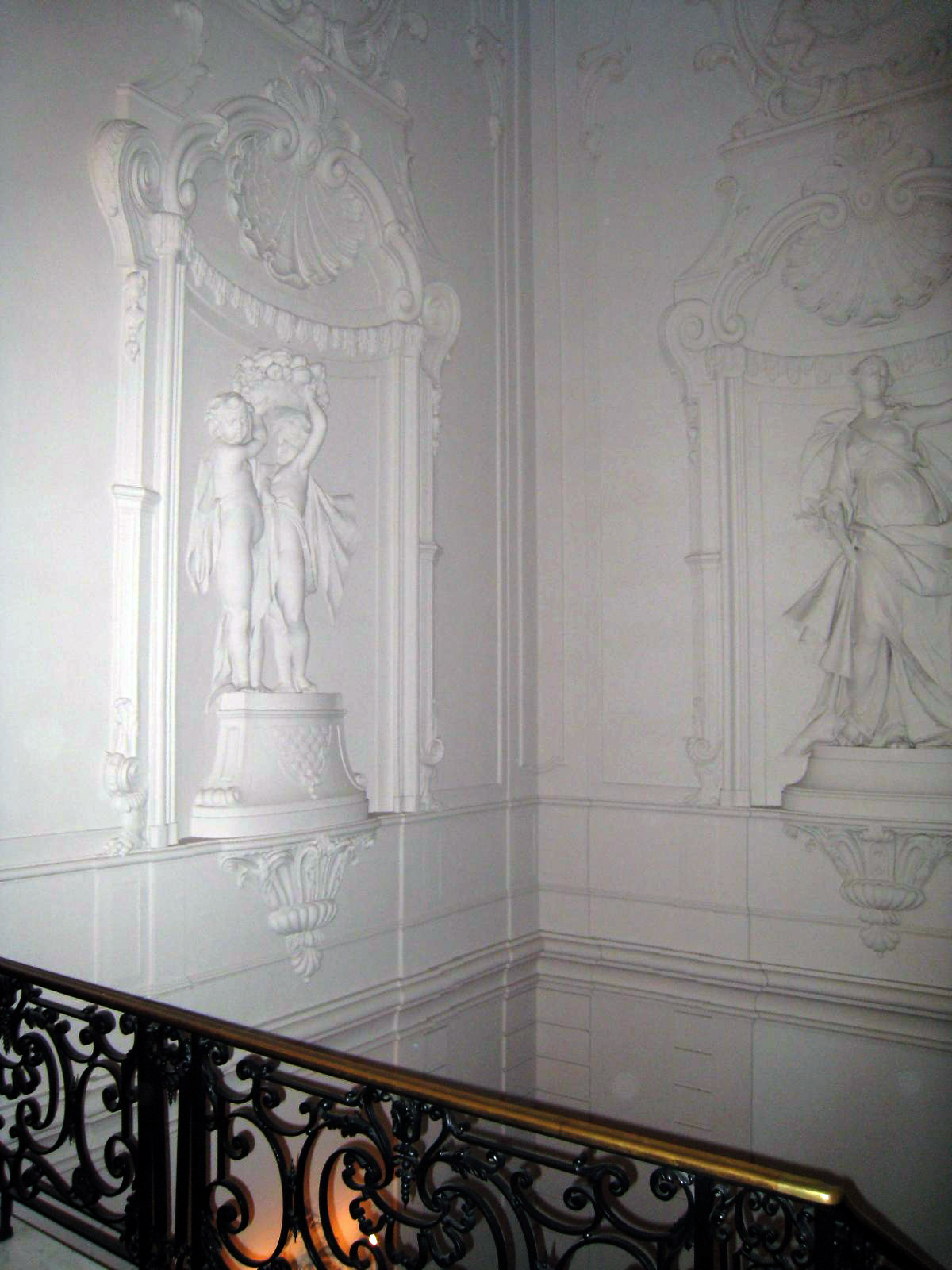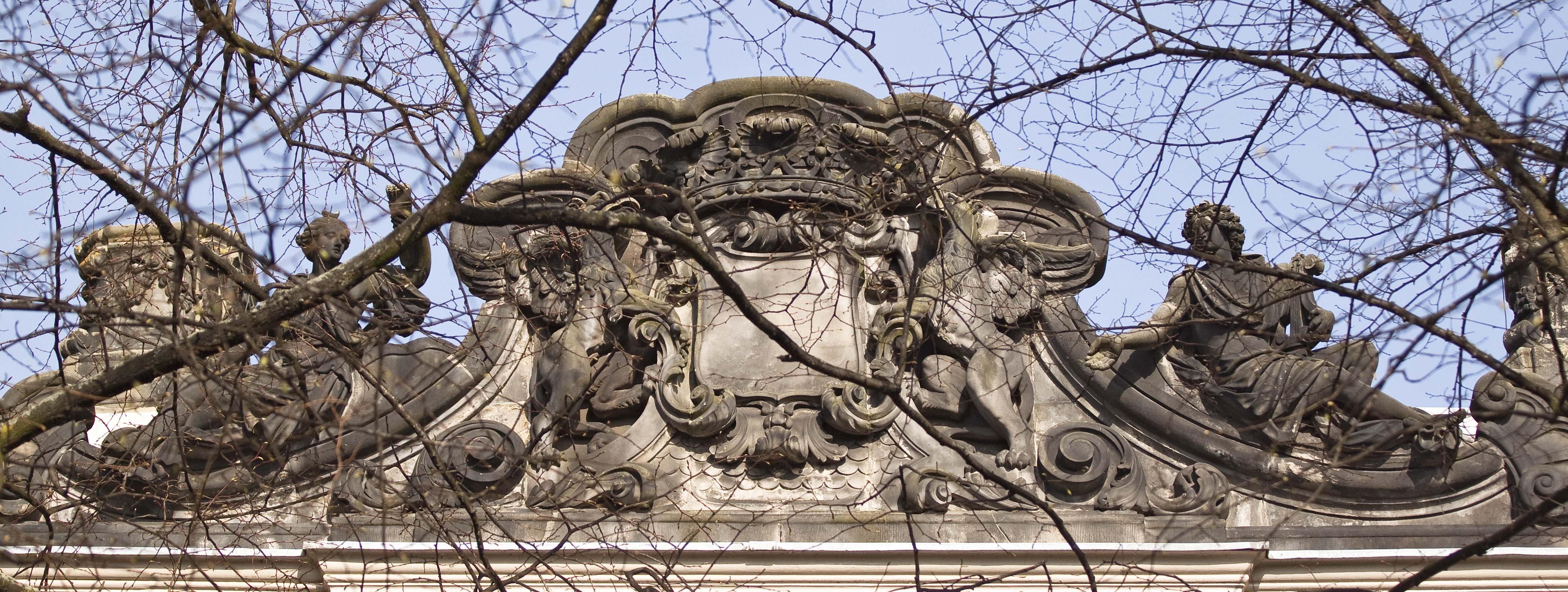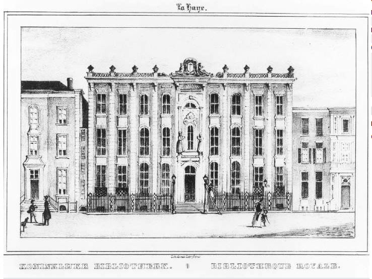 Koninklijke Bibliotheek, eertijds Huis Huguetan, middenpartij gebouwd in 1734-'36 naar plannen van Daniel Marot; de hoekrisalieten toegevoegd in 1761 door Pieter de Swart. Zeer rijke natuurstenen voorgevel - weelderige interieurs.