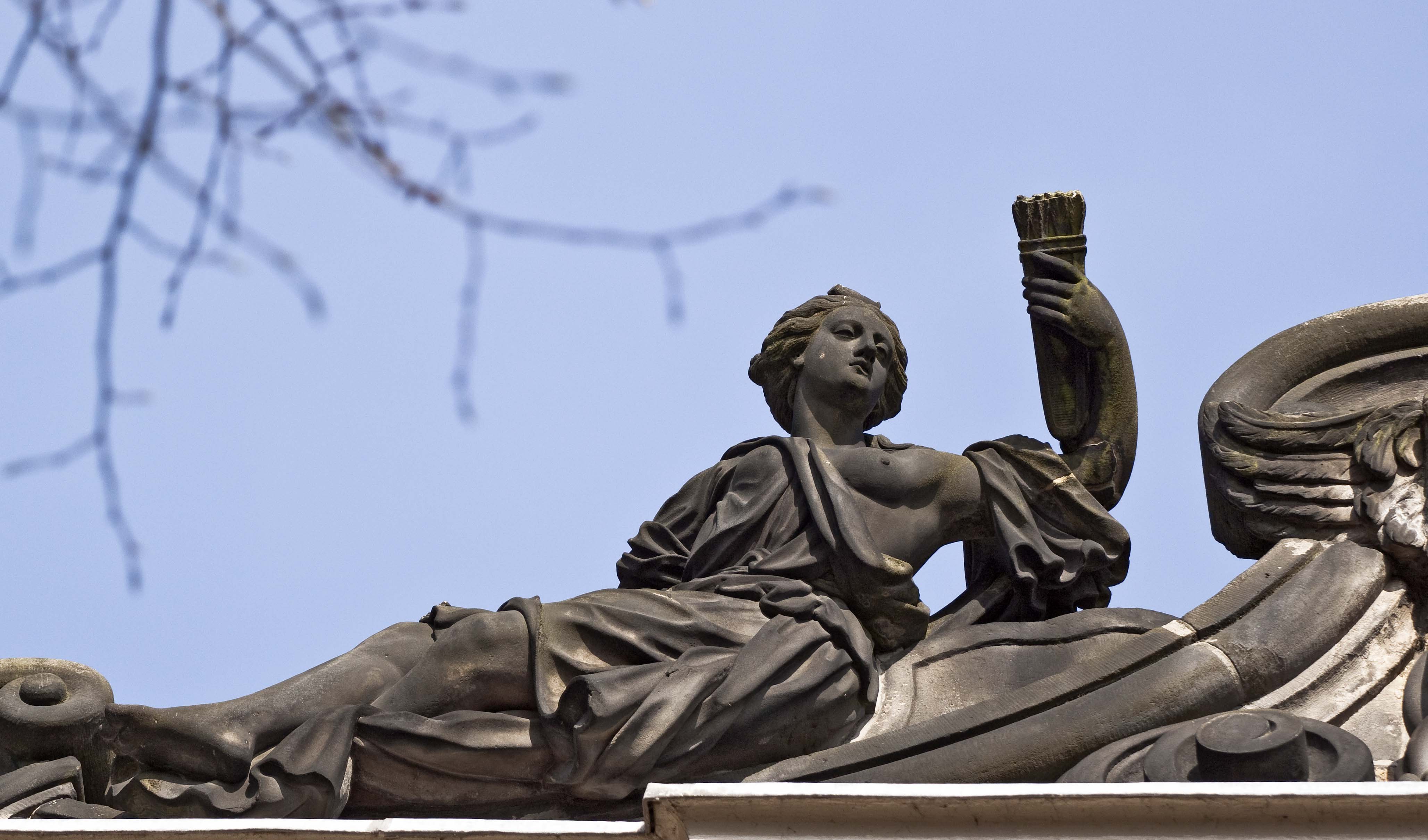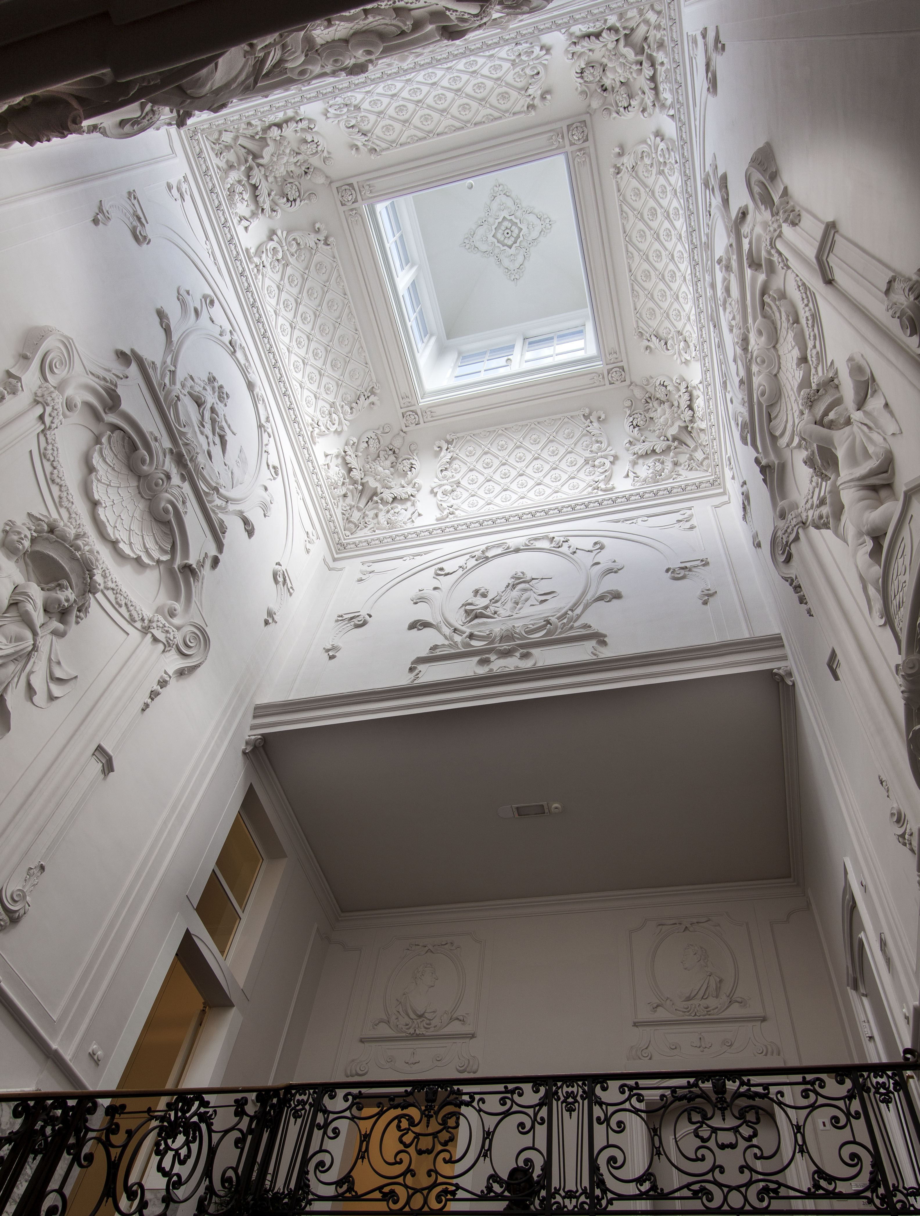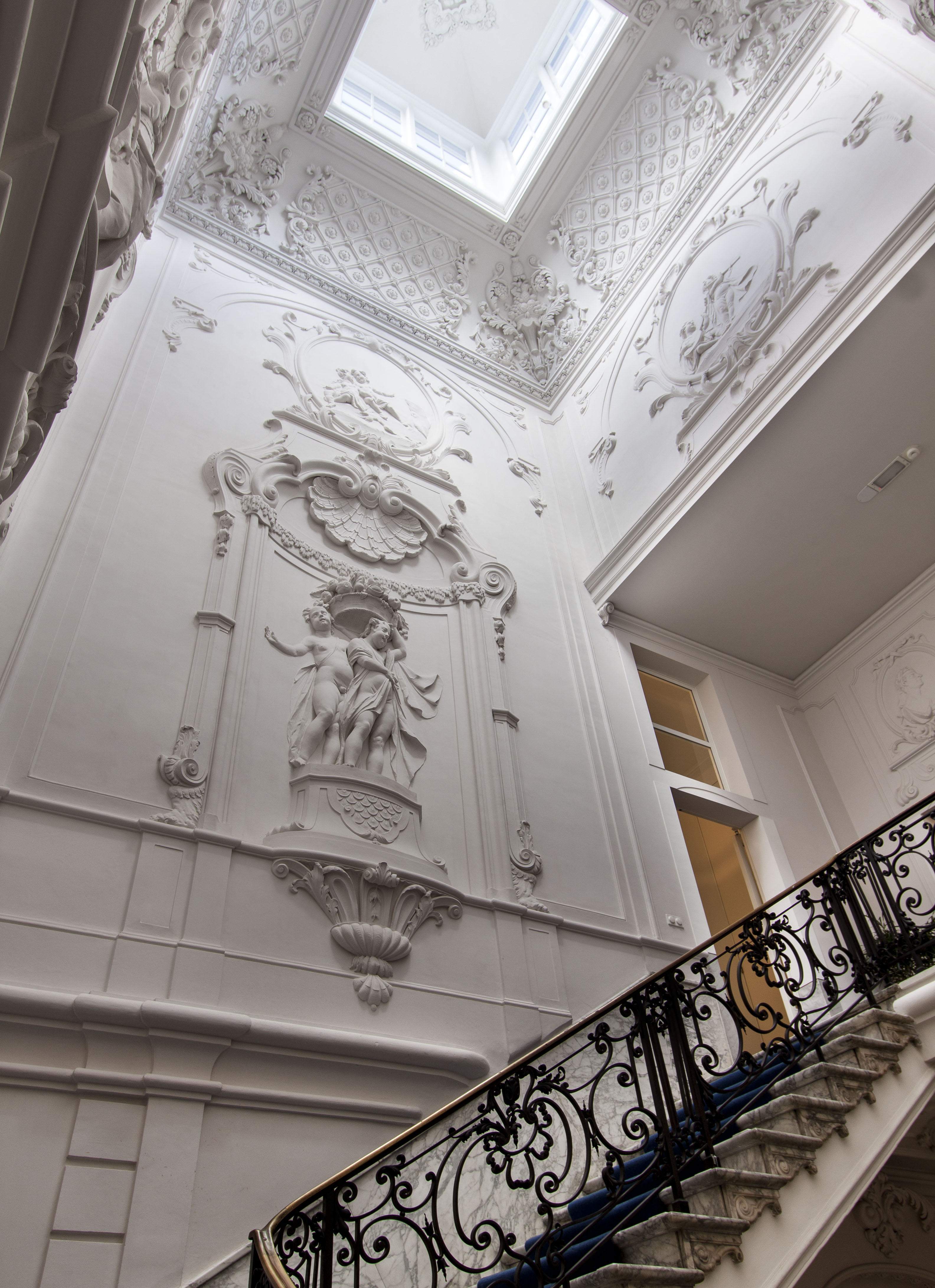 Koninklijke Bibliotheek, eertijds Huis Huguetan, middenpartij gebouwd in 1734-'36 naar plannen van Daniel Marot; de hoekrisalieten toegevoegd in 1761 door Pieter de Swart. Zeer rijke natuurstenen voorgevel - weelderige interieurs.