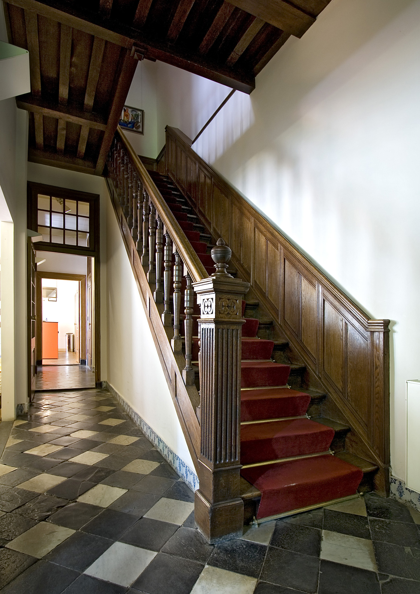 Pand met vroeg 17e eeuwse trapgevel met natuurstenen deuromlijsting.