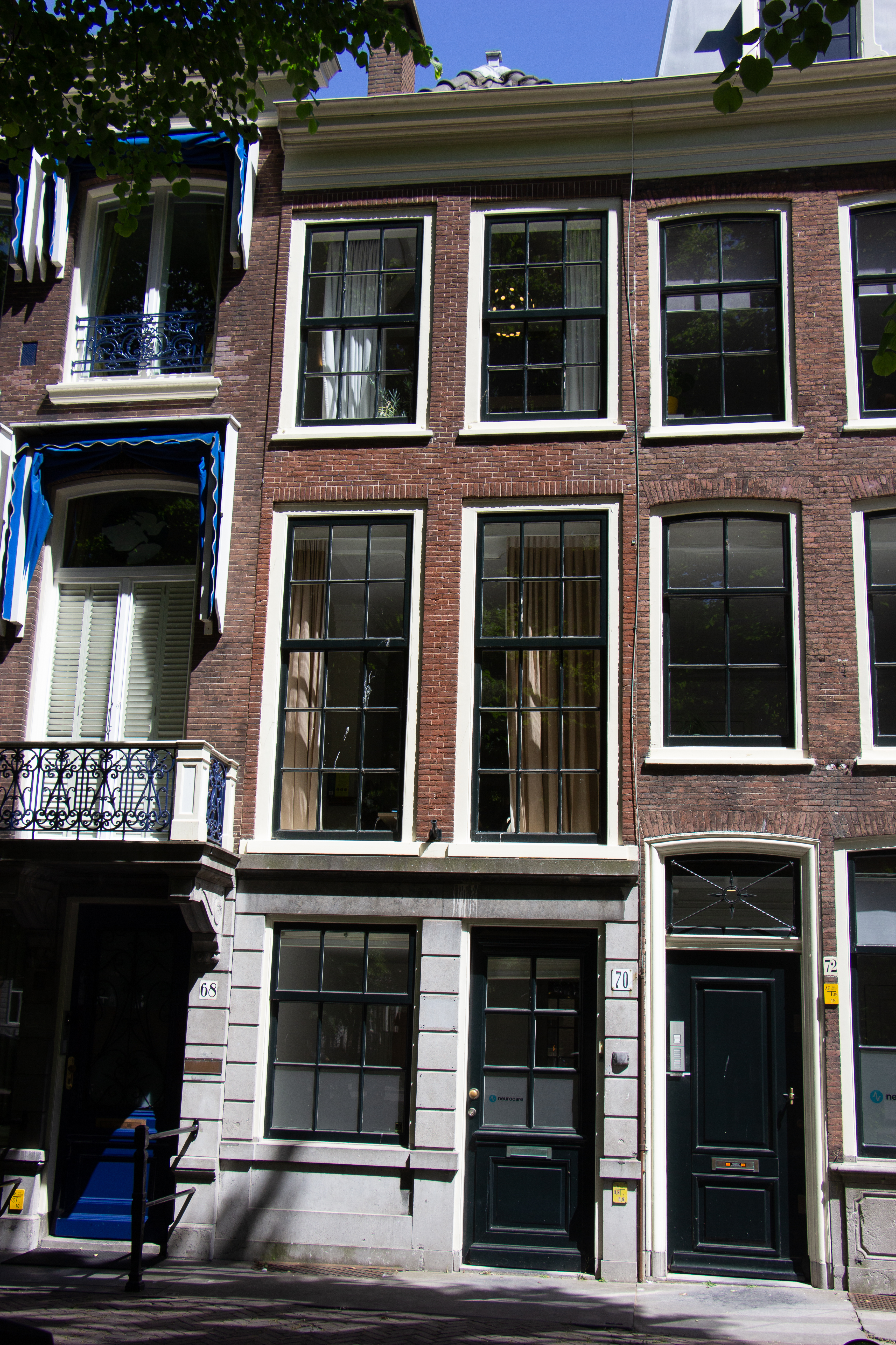 Pand met bakstenen gevel uit het eind van de 18e eeuw met rechte kroonlijst.