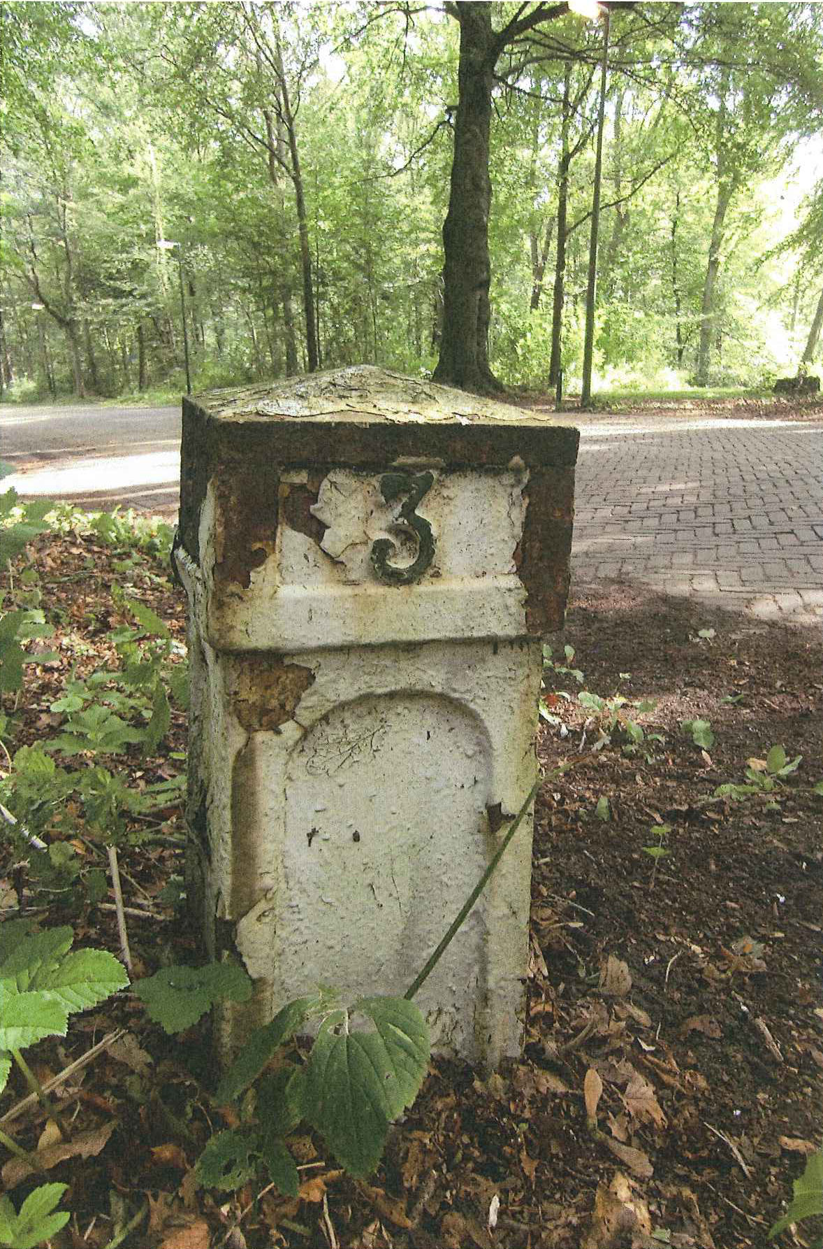 Het wegtraject tussen 2 en 3,7 km is nog steeds voorzien van palen. Twee gietijzeren palen met kilometeraanduiding 2 en 3 en veertien hectometerpalen van basalt of beton. Er ontbreken twee hectometerpalen: de paal op 2.6 km, die bij de verbreding van de Laan van Nieuw Oost-Indië is gesneuveld en de paal op 3.2 km