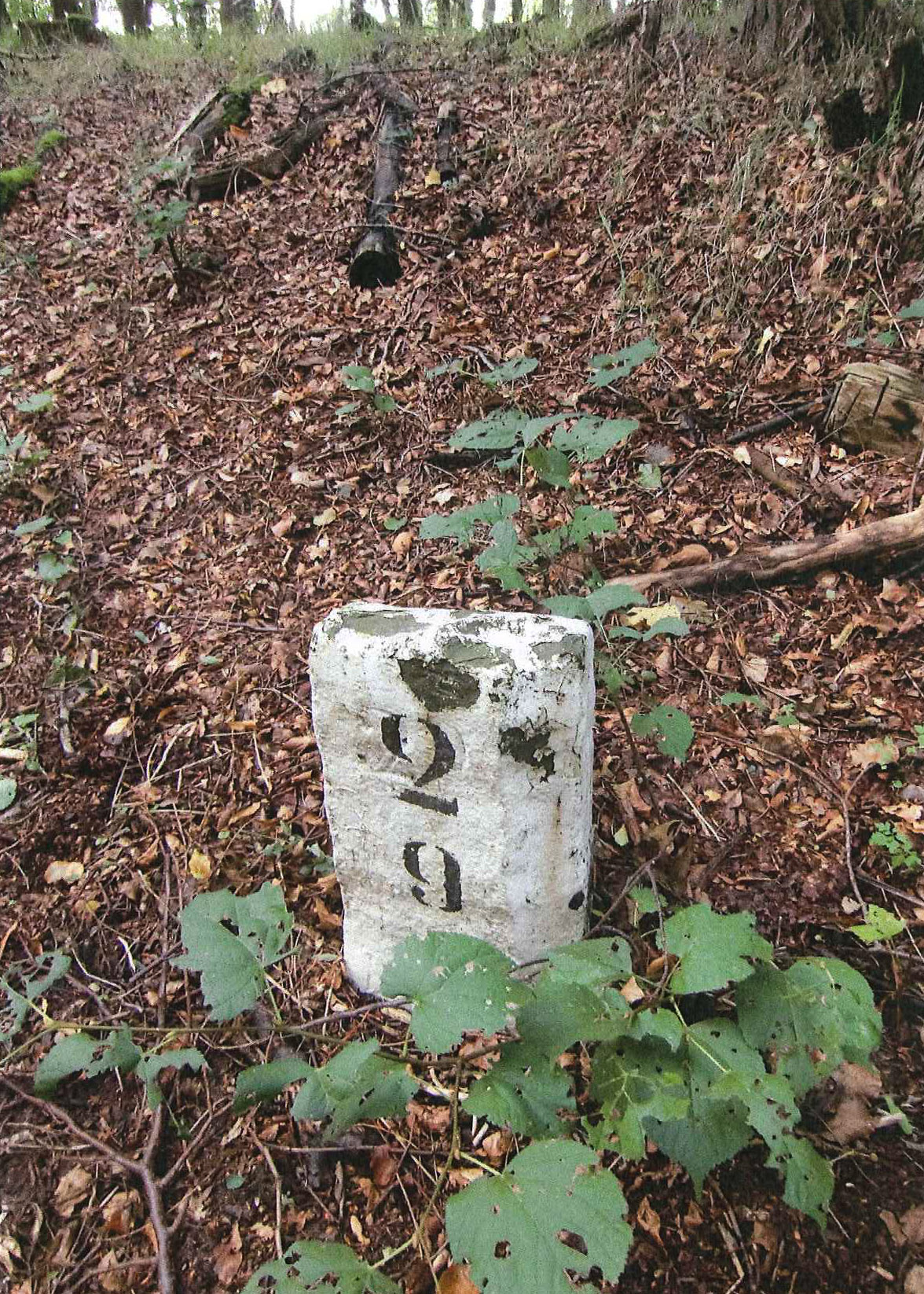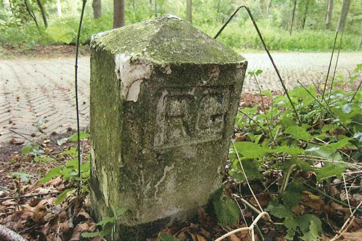 In de rij tussen 2 en 3.7 km is een aantal gaten gevallen die in de twintigste eeuw zijn opgevuld met palen van gewapend beton (5 stuks). Vier daarvan zijn identiek. Ze hebben een vierkante vorm met afgevlakte hoeken, een doorsnede van 18 cm en een diamantkop. Aan de achterzijde zijn de letters R.G. ingegoten. Dergelijke palen geven de grens aan van het Rijksgebied. De laatste paal op rij, tegenover de ingang van Leidse straatweg 15 is een betonnen paal met een vlakke top en een groef aan de achterzijde.