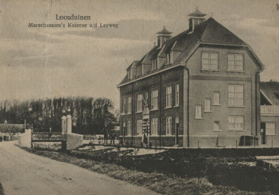Voormalige kazerne voor de Koninklijke Marechaussee, ontworpen in overgangsarchitectuur. In de kazerne was vanaf 1920 de brigade Loosduinen ingekwartierd. Later werd het in gebruik genomen als dependance van het District Zuid-Holland.