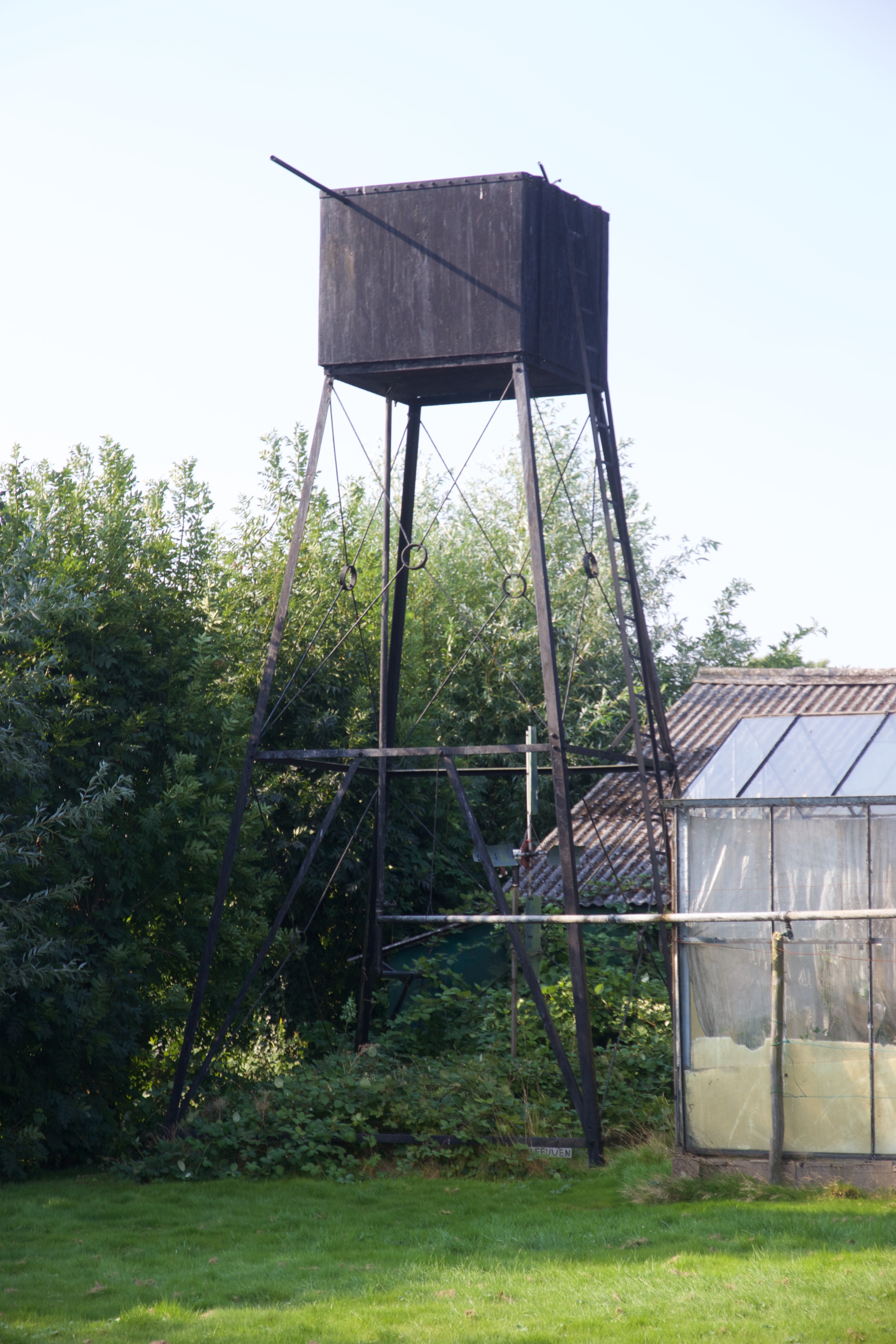 IJzeren watertoren gebouwd in het begin van de twintigste eeuw ten behoeve van de uitoefening van een glastuinbouwbedrijf. De watertoren bestaat uit een op een tweedelig vakwerk staalskelet met trekstangen geplaatst vierkant ijzeren waterreservoir met klinknagels. Tegen het reservoir is een ijzeren ladder geplaatst.