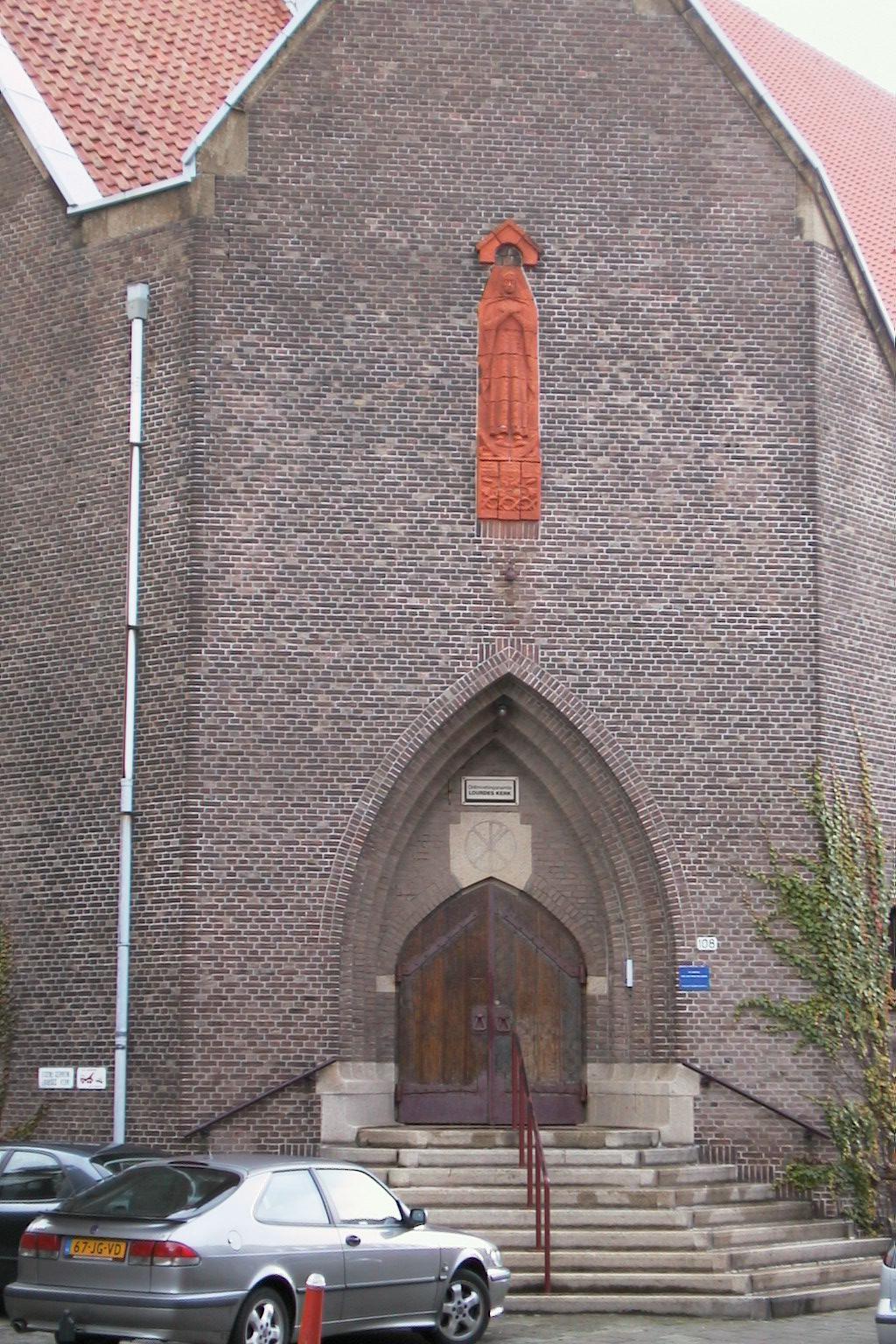 Het in baksteen uitgevoerde gebouw draagt een hoog met pannen gedekt zadeldak tussen puntgevels. Behalve een portaal aan de Berkenbosch Blokstraat onder de toren is een portaal aan de noord-west kant aan de Tweede Messstraat. Deze hoek wordt geaccentueerd door een hoge puntgevel waarin een terra-cotta reliëf met een voorstelling van O.L. Vrouw is opgenomen. Naast het priesterkoor staat aan de Tweede Messstraat een slanke angelustoren met een zadeldak met puntgevels. Hierbij aansluitend de kosterij, Tweede Messstraat 110. Dit pand is door C.M. van Moorsel gebouwd en telt vier bouwlagen onder een plat dak. De gevel is uit baksteen opgetrokken en heeft aan de straatzijde op de eerste bouwlaag zeven rechthoekige vensters en op de tweede bouwlaag drie spitsboogvensters. In de zijgevel komen rechthoekige vensters met tussenstijlen voor. Het brede schip van de kerk, in de zijwanden verlicht door reeksen van vier houten rechthoekige vensters per travee, wordt overdekt door een hoge bekapping, bestaande uit houten kapspanten met ijzeren moerbouten en lasplaten. Het schip wordt geflankeerd door smalle zijbeuken, die van de middenbeuk worden gescheiden door spitse scheibogen op kolommen van gewapend beton, bekleed met baksteen. Het smallere presbyterium heeft een driezijdige sluiting en heeft in de zijgevels vensters. Aan de Berkenbosch Blokstraat staat naast de toren de Lourdeskapel. Deze heeft een met leien gedekt zadeldak waarop een vierkant torentje met inzwenkende spits is geplaatst. In de bakstenen gevel is ondermeer opgenomen een tondo met een gebeeldhouwd reliëf van Mendes da Costa als zinnebeeld van Christus en tegen de dakgootlijst is een boogfries geplaatst.
