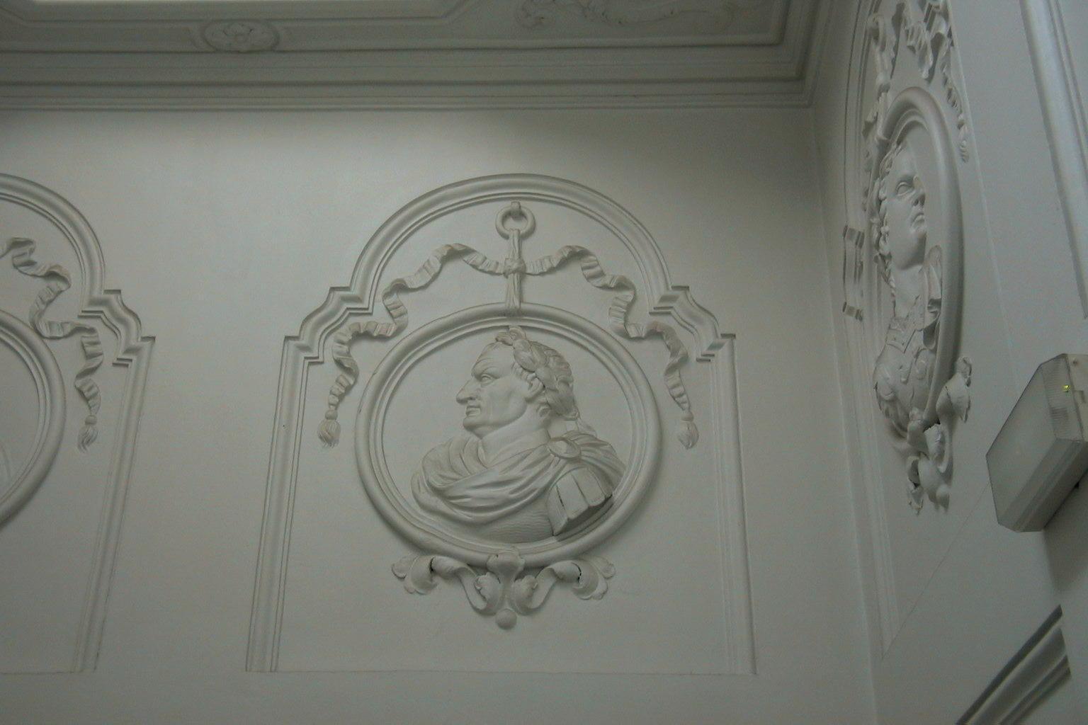 Pand met 18e eeuwse gevel met kroonlijst op gesneden maskerconsoles en versierde ingangspartij.