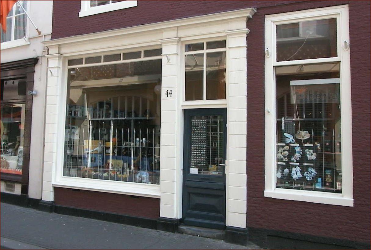 Pand uit de 18de eeuw ter breedte van drie vensterassen, bestaande uit parterre en verdieping. Zadeldak met dakkapel, deel uitmakend van één, over de nummers 38-46 doorlopend zadeldak. De gesausde lijstgevel heeft een door geblokte houten pilasters en hooidgestel omlijste deur en étalageruit. In de verdiepingsvensters zesruitsschuiframen. Het pand staat met de achterzijde tegen de Oud-Katholieke Kerk.