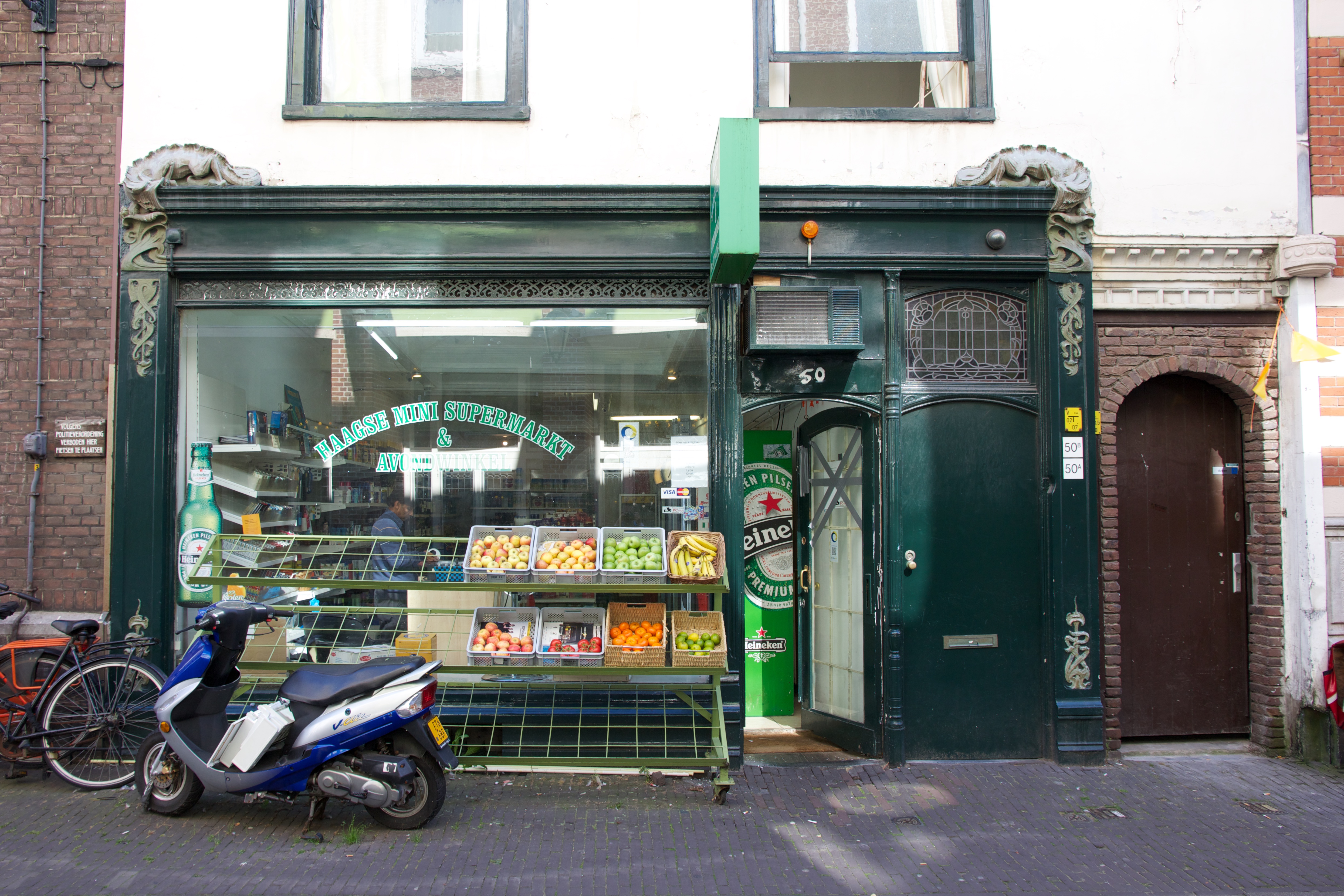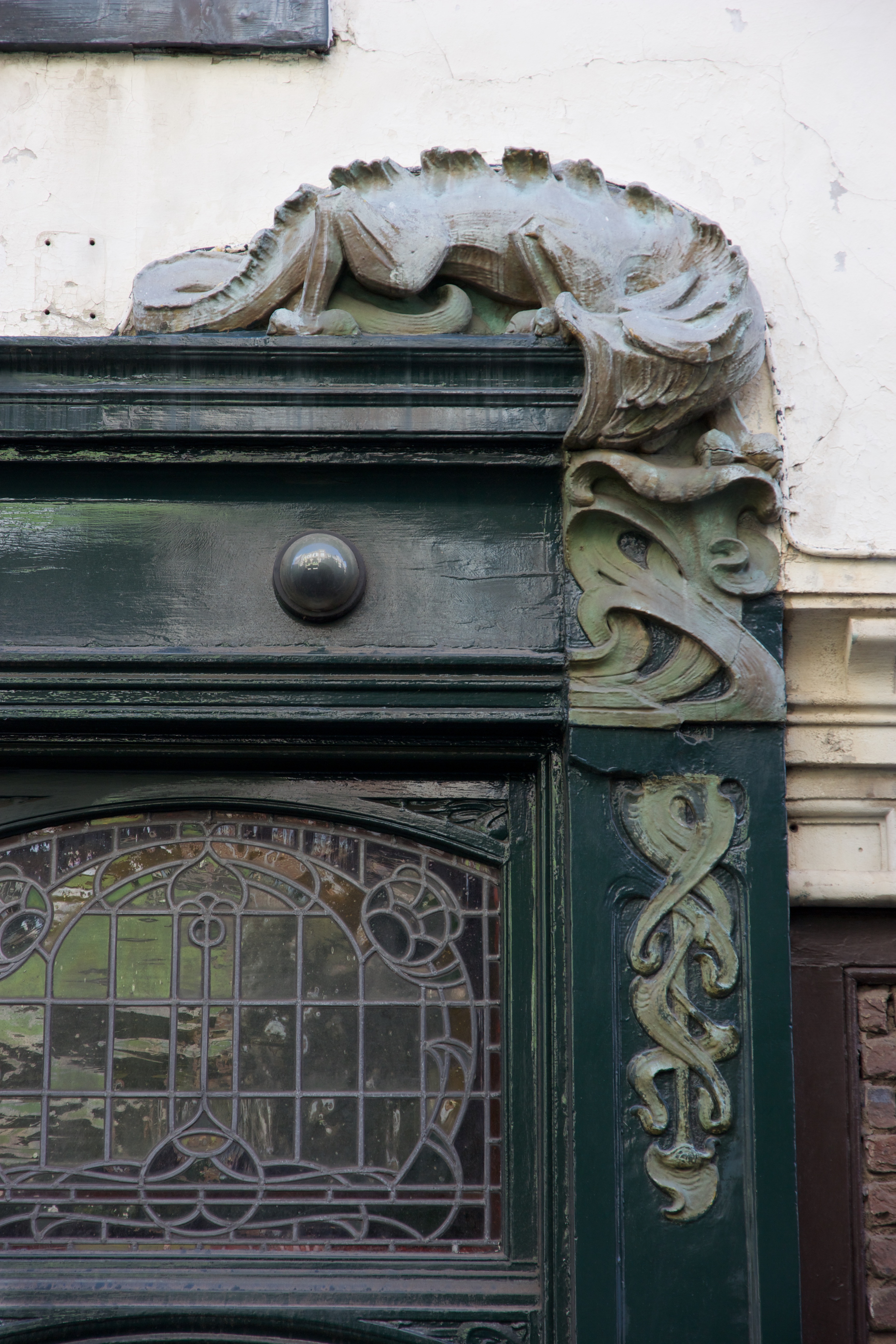 18de-eeuws pand met gepleisterde lijstgevel. Het pand telt twee venster- assen en bestaat uit een parterre met twee verdiepingen. Dakkapel. Houten winkelpui met gesneden versieringen, begin 20ste eeuw.