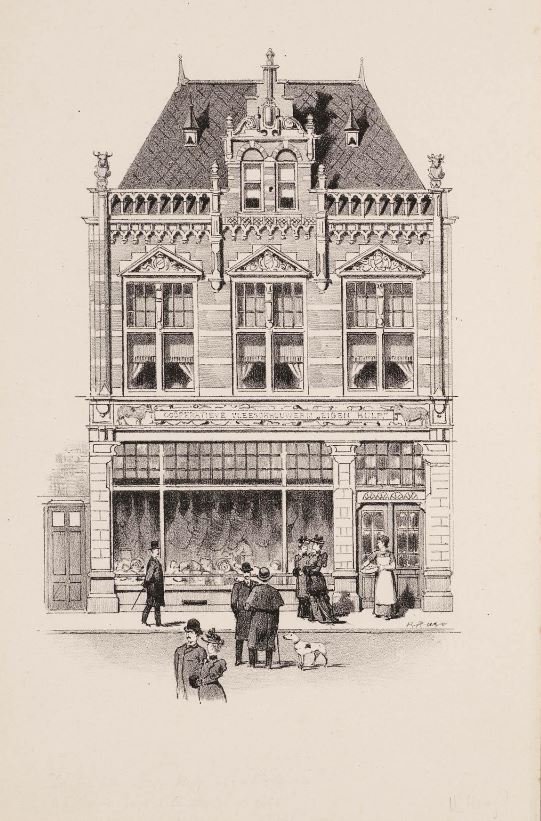 Voormalig bedrijfspand van de Cooperatieve Vleeschhouwerij Eigen Hulp uit 1894 in rijke neo-renaissance naar ontwerp van de architect J.J. van Nieukerken. Het pand is opgenomen in de straatwand met aaneengesloten bebouwing. Oorspronkelijk was op de begane grond de winkel en op de verdieping de bestuurskamer. Thans is de begane grond in gebruik voor horeca en de verdieping als woonruimte. Omschrijving.