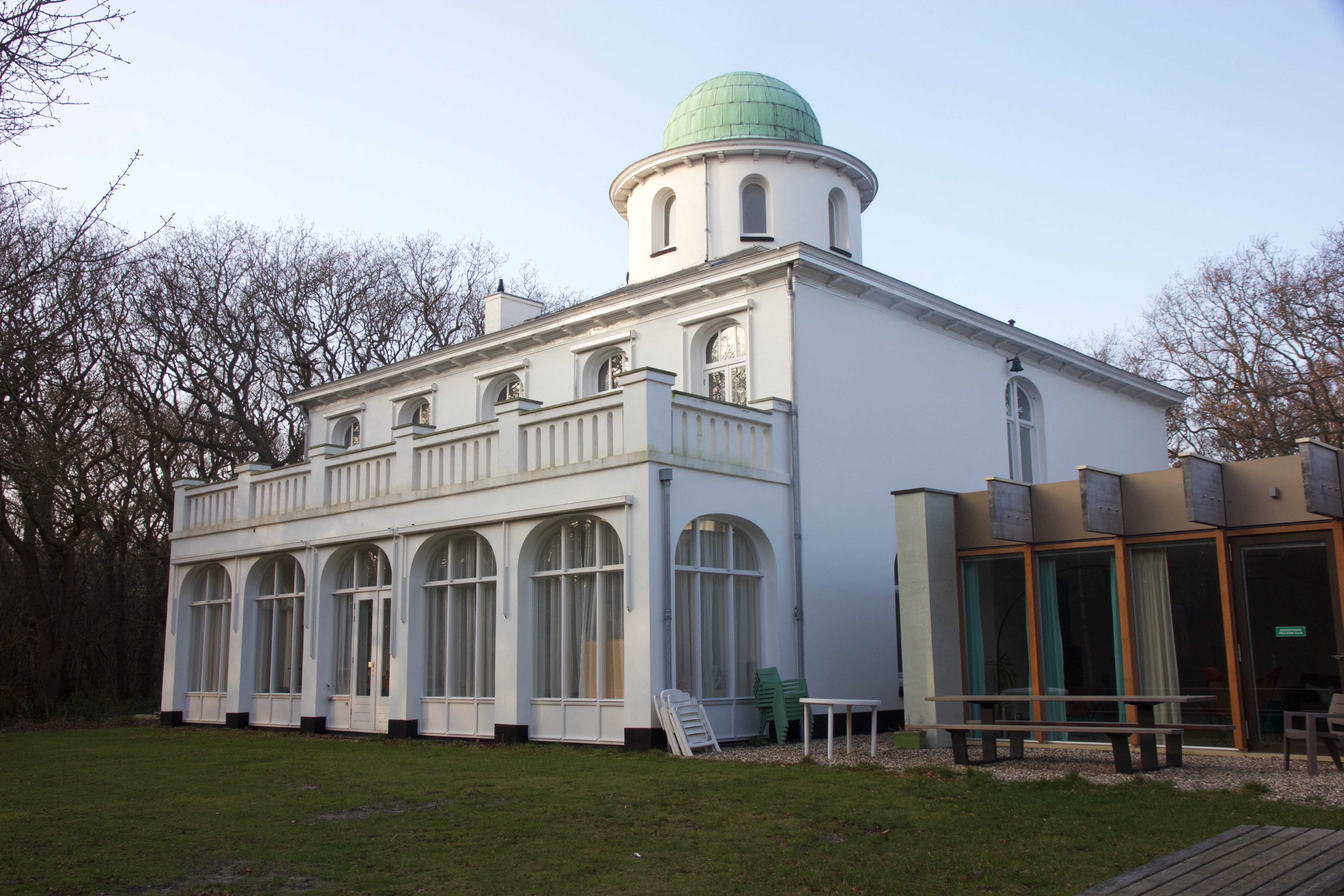 Van den Berg ontwierp een wit gepleisterde villa op een vierkante plattegrond voorzien van een flauw hellend tentdak. Centraal in het huis bevindt zich een cilindervormige schacht die als koepel door het dak steekt. Deze koepel was bedoeld als belvedère en biedt uitzicht op het omliggende duinlandschap. Aan de zuidzijde bevindt zich het verlengde van de oprijlaan de symmetrisch opgezette voorgevel van het gebouw. Hier is het pand over de volle breedte voorzien van een inmiddels dichtgezette portico met daarboven een balkon. De overige gevels hebben een meer informeel karakter waarbij de gevelindeling is afgestemd op de plattegrond van het huis. De vierkante plattegrond met kamers gegroepeerd rondom een centrale hal en de portico zijn geïnspireerd op de Palladiaanse architectuur.