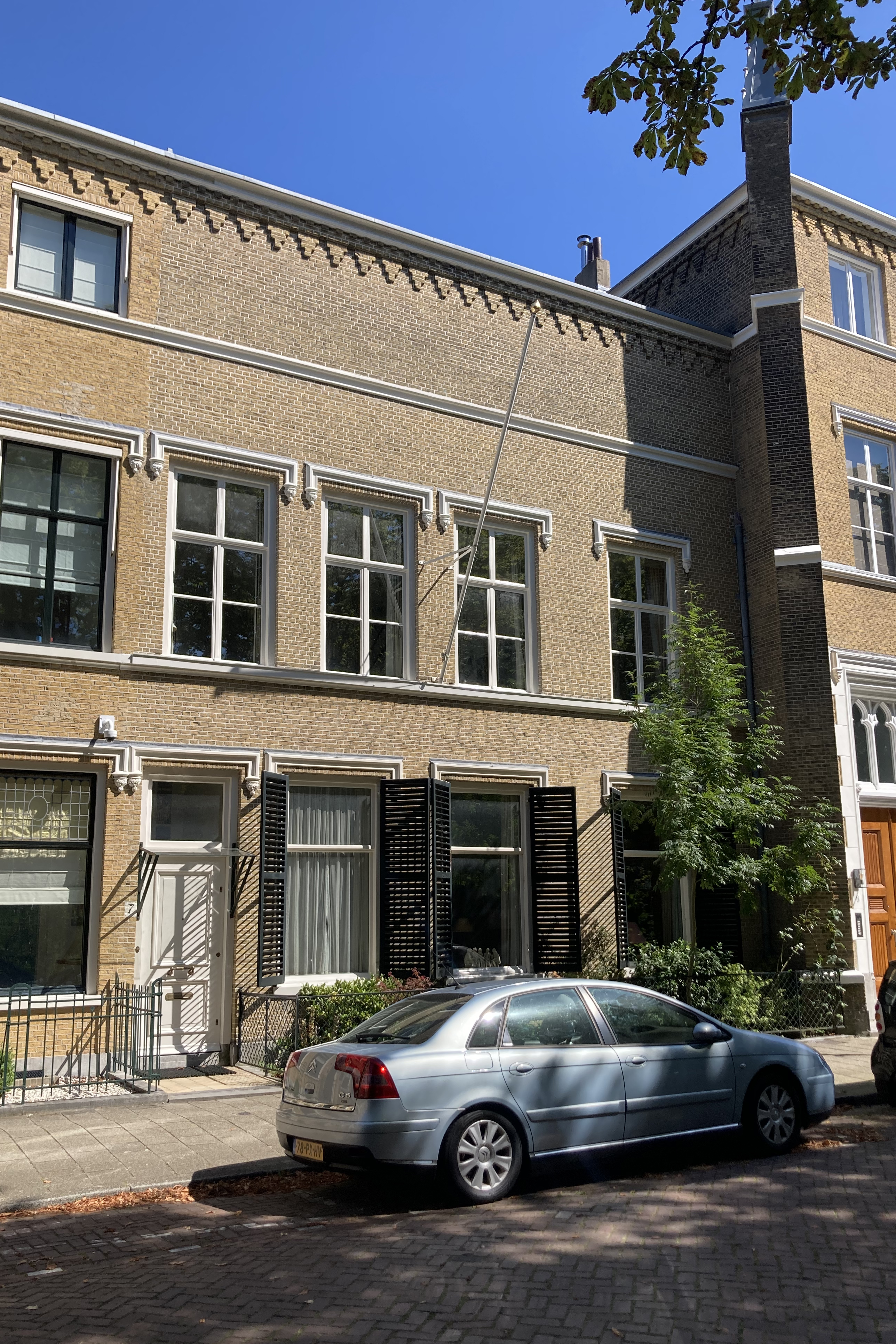 Voornaam woonhuis in bakstenen neo-gotiek naar Engelse trant - als onderdeel van de gehele straatwand voor Nederland uniek voorbeeld van planmatige aanleg uit het midden van de 19e eeuw.
