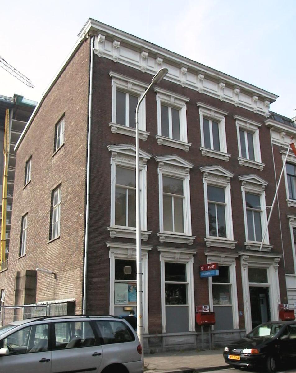 Pand uit 1879-1880, bestaande uit parterre en twee verdiepingen; breedte vier vensterassen. De ongepleisterde gevel heeft een hardstenen plint, boven de parterrevensters hoofdgestellen, boven de verdiepings- vensters frontons op met lofwerk versierde friezen en consoles en boven de vensters van de tweede verdieping hoofdgestellen. Houten kroonlijst met in het fries panelen en paarsgewijs geplaatste consoles, neo-Lodewijk XIV. De vensters van de verdiepingen rusten op geprofileer de vensterbanken met consoles. Deuromlijsting met versierde pilasters en hoofdgestel op consoles. Deur uit de bouwtijd.