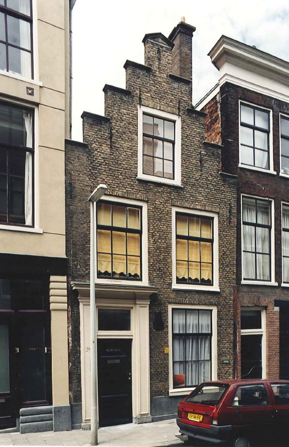 Pand met trapgevel uit het derde kwart van de 17e eeuw, deuromlijsting met pilasters.