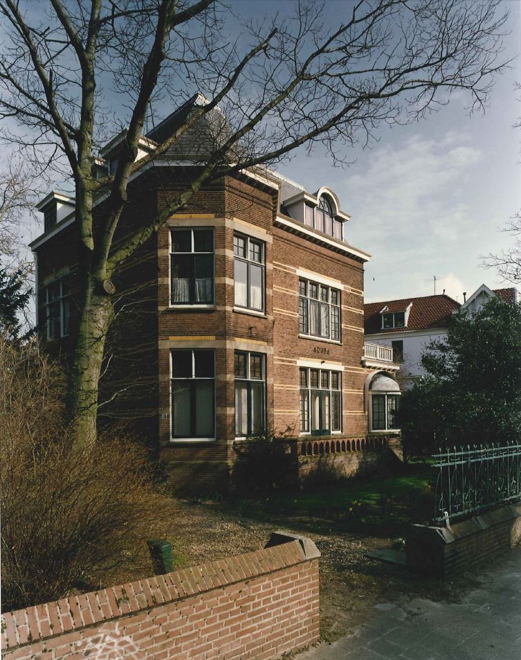 Vrijstaande, door een tuin omgeven villa, genaamd "Aruba" in traditionalistische stijl met invloeden van de Um Achtzehnhundert-beweging, gebouwd naar ontwerp van L.A.H. de Wolf, die in 1912 de bouwtekeningen indiende.