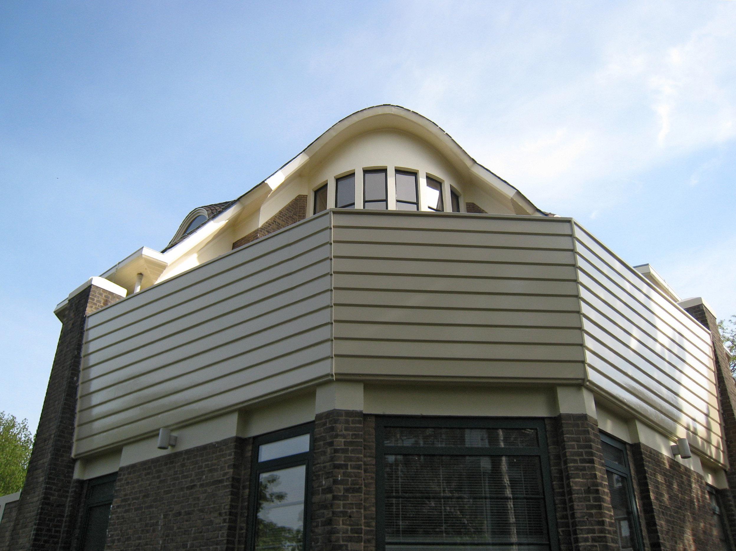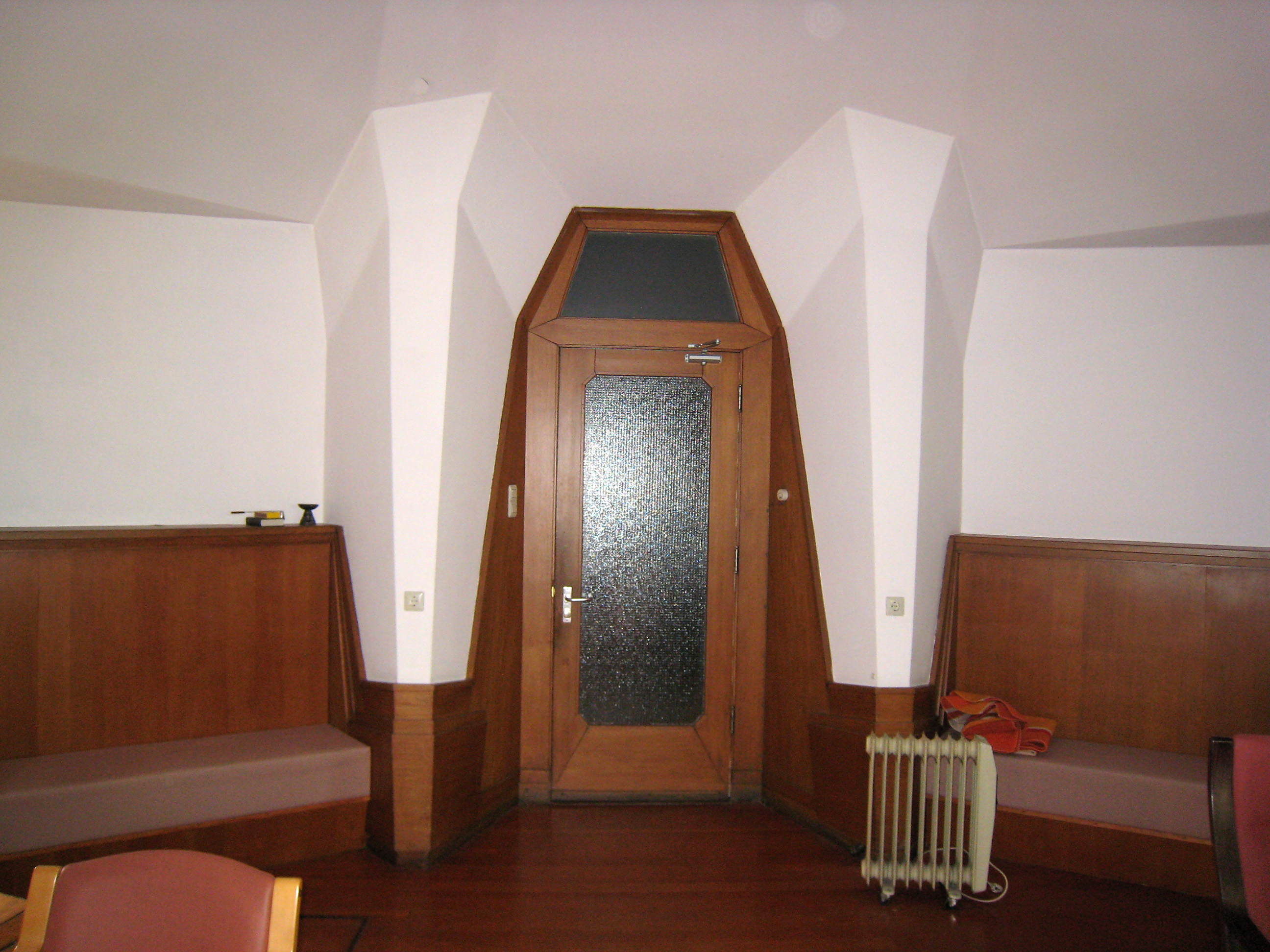 Dit gedeelte vertoont een lichte knik met de rest van het gebouw en bezit een bijna wigvormige plattegrondvorm met een smal balcon aan het uiteinde, waarboven een schuine oplopende luifel is aangebracht, in aansluiting op de kap; voorts een hoekige aanbouw aan de noordzijde waarop een uitgebouwde ingangspartij met stoep aansluit. De vormgeving is verder verwant aan de overige gedeelten van het gebouw, zoals ook blijkt uit de zij-ingang waarvan de deur een afgeschuinde hoek heeft.