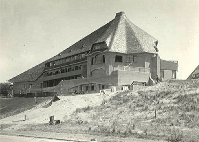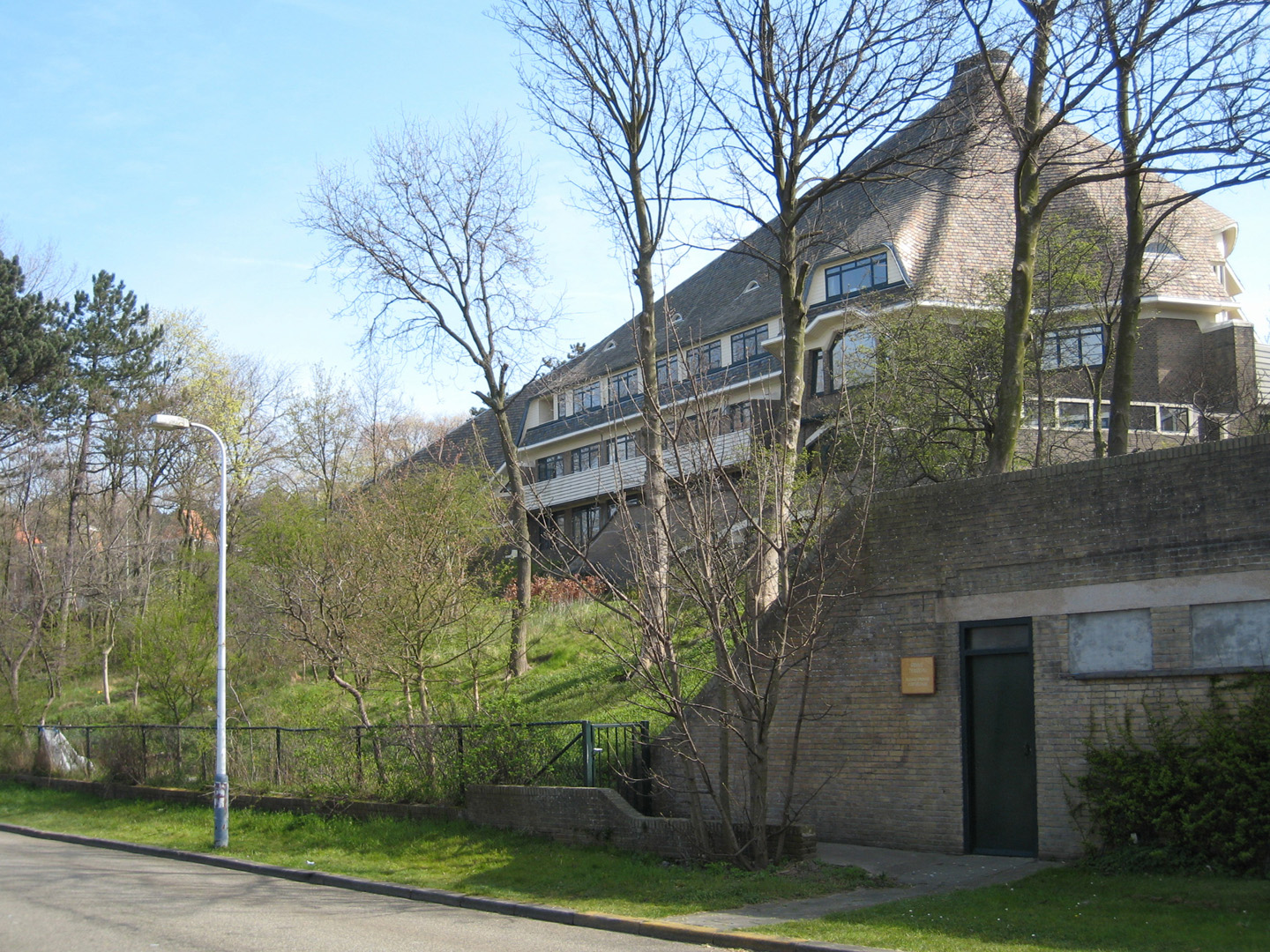 De in baksteen opgetrokken onderbouw bevat twee bouwlagen, terwijl de veel kleinere derde bouwlaag is opgenomen in de kap. De meeste vensters bezitten stalen kozijnen met horizontale roedenverdeling in donkergroene kleur. Door de situering van de gemeenschappelijke ruimten aan de uitersten van het gebouw en van de ziekenkamers in het midden - alle te weerszijden van een centrale gang of hal - is een soort driedeling in het gebouw ontstaan die echter in het uitwendige vrijwel teniet wordt gedaan door de alles overhuivende, de duintop waarop het gebouw is opgetrokken, navolgende, kap.