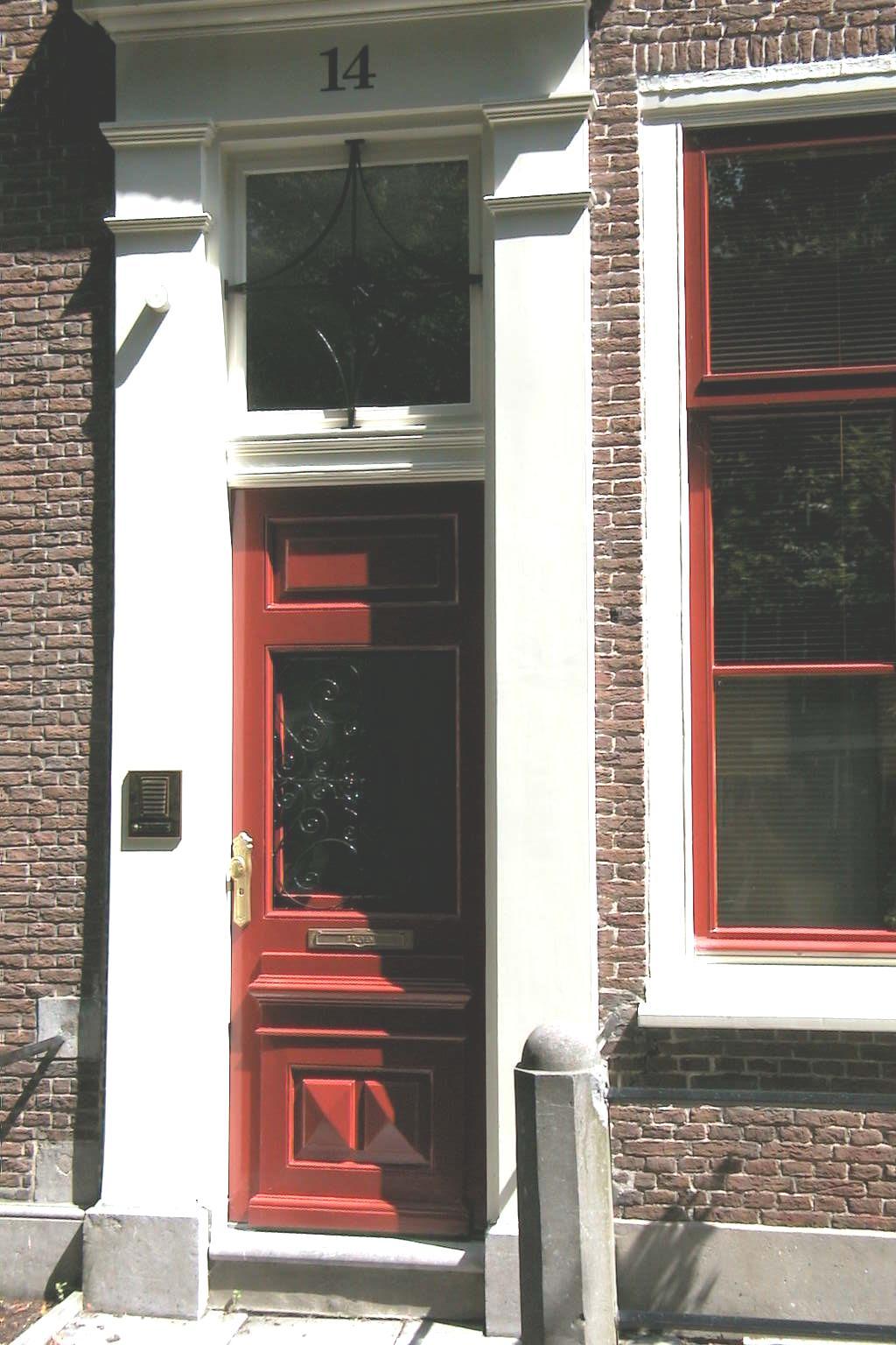 Pand met gevel uit de tweede helft van de 18e eeuw, versierde ingangspartij.