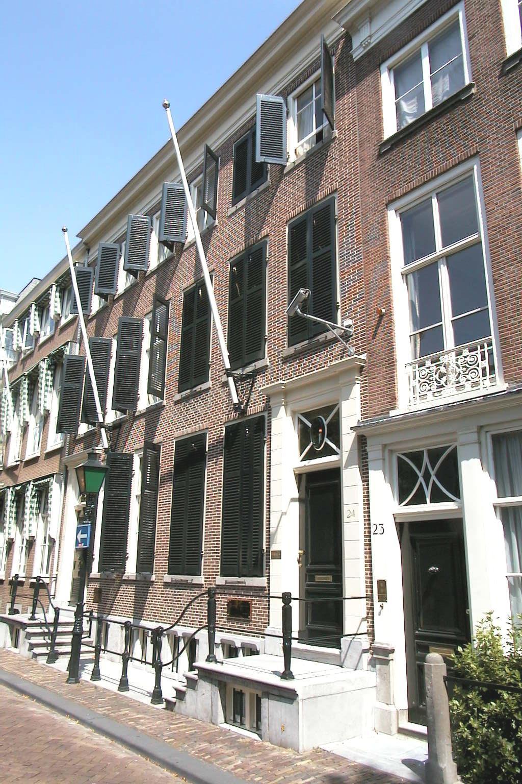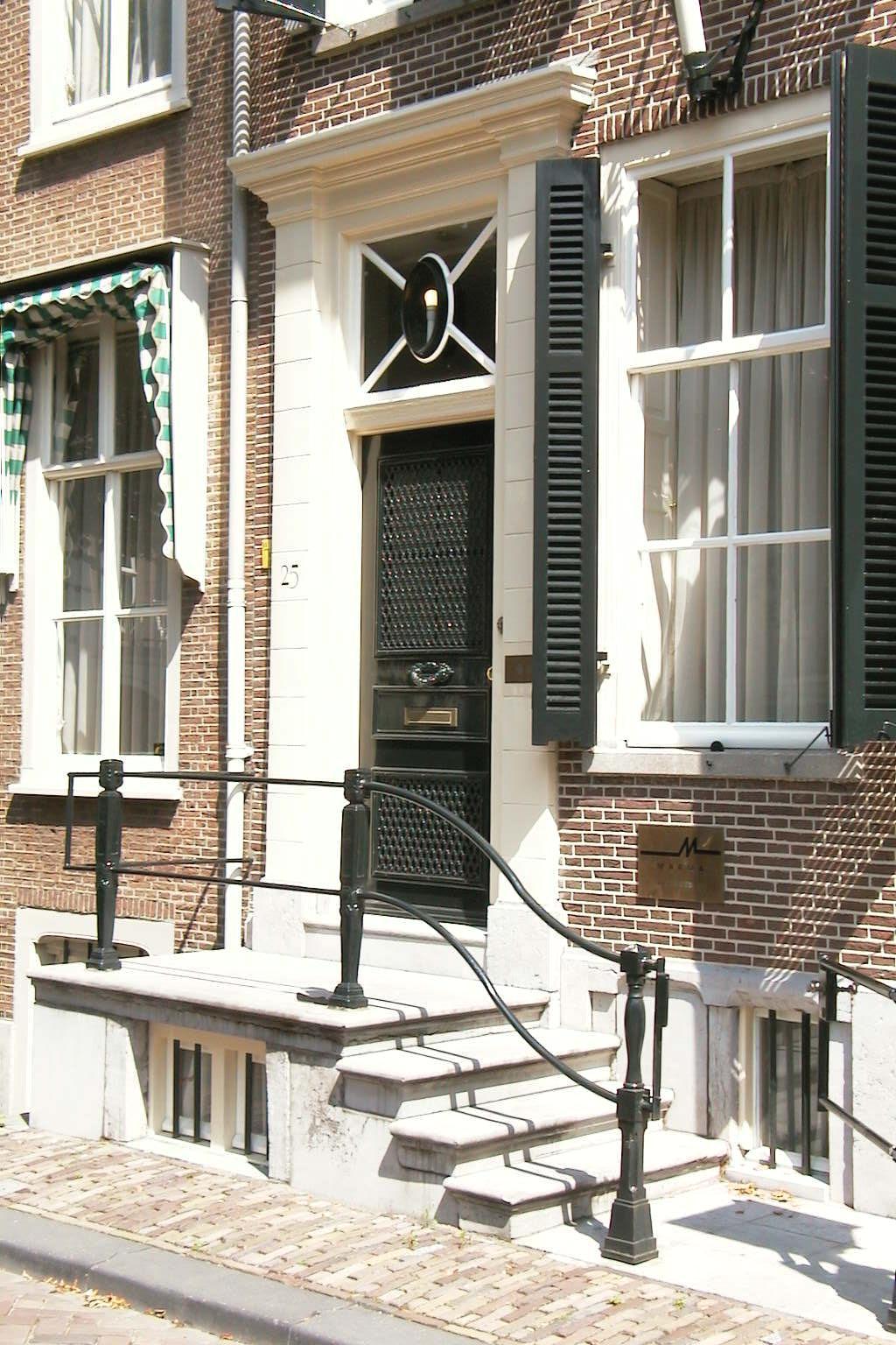 Pand met gevel van omstreeks 1750 met stoep en versierde deurpartij.