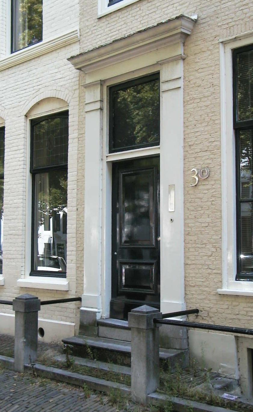 Pand met 18e eeuwse gevel, deur met pilasteromlijsting.