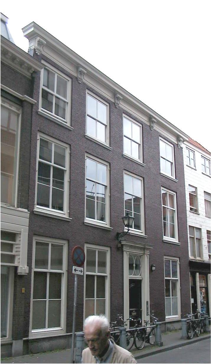 Pand met gevel in Lodewijk XIV stijl met kroonlijst op gesneden consoles - inwendig restant van een Rooms-Katholieke schuilkerk.