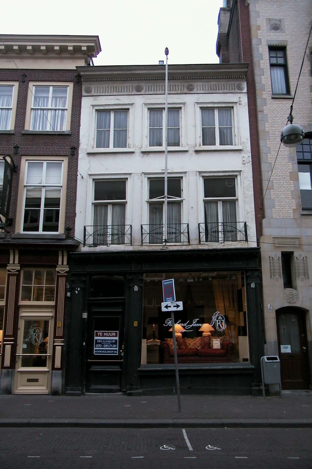 Pand ter breedte van drie vensterassen, bestaande uit parterre en twee verdiepingen. Gepleisterde lijstgevel, in de huidige vormgeving eerste helft 19de eeuw. Houten winkelpui waarvan de pilasters palmetkapitelen bezitten, tweede helft 19de eeuw. Geprofileerde vensteromlijstingen; voor de vensters van de eerste verdieping gietijzeren raaxnhekjes. De houten kroonlijst heeft in het fries cannelure-achtige versieringen en rozetten.
