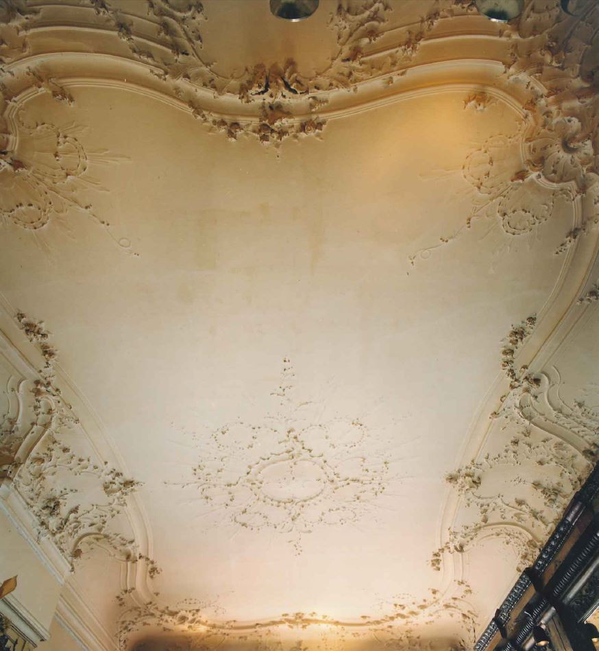 Pand met gevel in Lodewijk XIV stijl - geheel gemoderniseerde onderpui - inwendig enkele stucplafonds naar ontwerp van Daniel Marot in Lodewijk XV stijl.