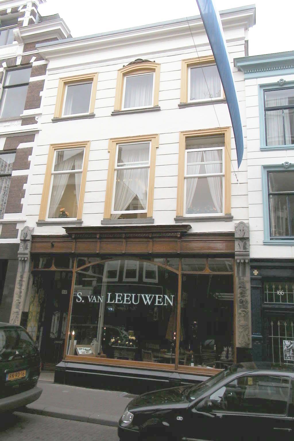 18de-eeuws pand, bestaande uit drie bouwlagen zonder kap en met een breedte van drie vensterassen. De geblokte gepleisterde lijstgevel heeft een 19de-eeuws karakter: vensters met geprofileerde houten omlijstingen, maar met hardstenen dorpels uit de 18de eeuw. Art Nouveau winkelpui uit ca. 1900. De hoekpenanten hebben sierpatronen in hardsteen en zandsteen gebeeldhouwd en de glaspui is gevat in een houten omlijsting. Winkelpui gesigneerd: "Karel Meijer en H.E.M. Rademaker architecten" Links een portiek met kleurig tegeltableau, gesigneerd "Holland" Utrecht. Deur naar het woonhuis (164) met siertraliewerk en koperwerk in Art Nouveau; winkeldeur eenvoudiger in dezelfde trant. In het achterste deel van de winkel wordt de zoldering gedragen door rijk versierde, gietijzeren zuiltjes. De achterkamer van het voorhuis heeft een stucplafond in neorococostijl. Het achterhuis, van het voorhuis door een plaatsje gescheiden, heeft in de gepleisterde voorgevel een venster met 56-ruiteschuifraam. In dit achterhuis een gaaf bewaarde 18de-eeuwse keuken met pomp, aanrecht, kasten en betimmering, alsmede tegelbekleding. Tuinkamer met Empireplafond en -schoorsteenmantel. Gewijzigde, 18de-eeuwse achtergevel. Achter het pand een tuin met oud geboomte.