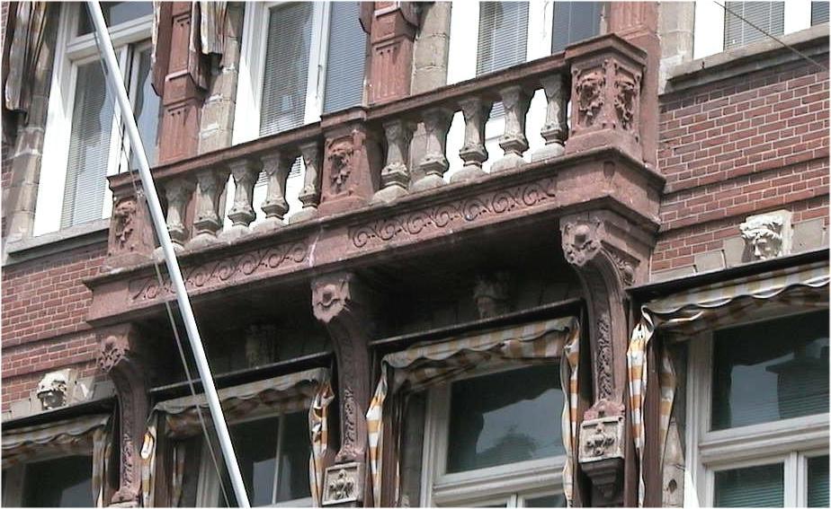 Pand ter breedte van vier vensterassen, bestaande uit parterre en twee verdiepingen met schilddak, evenwijdig aan de straat. Lijstgevel in neorenaissancestijl met rijke natuurstenen sculptuur: geblokte en gecan- neleerde pilasters, banden, balkon met balustrade, gedragen door consoles Onder de houten kroonlijst natuurstenen consoles. De gevel is gedateerd: 1884.