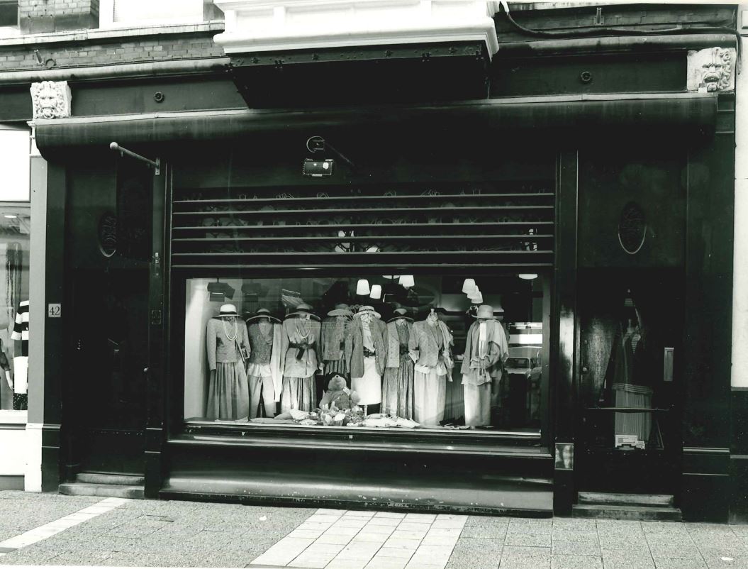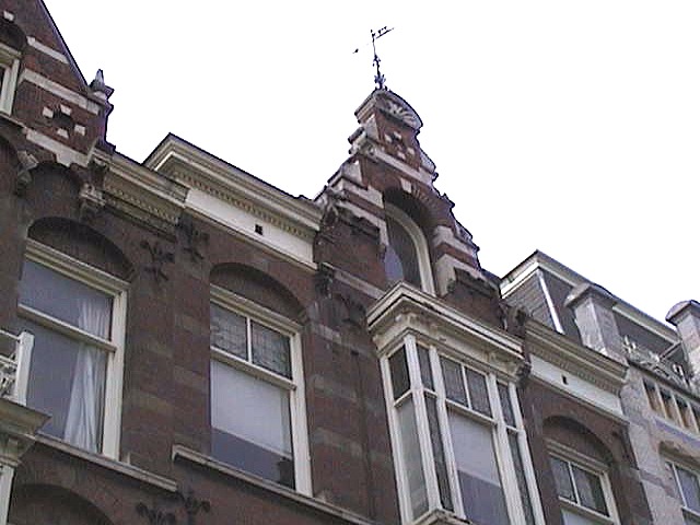 Pand van ca. 1895 met voorgevel in laat-eclectische stijl, waarin voornamelijk neo-renaissance kenmerken; door segmentfronton en smeedijzeren spits bekroonde top die door het klassiek geinspireerde hoofdgestel breekt. In de drie-assige gevel rondboogvensters met ontlastingsbogen en in de middenas erkers. Winkelpui in .Amsterdanse School stijl, ca. 1925, vrijwel authentiek van staat; fraaie toepassing van gebrandschilderd glas en smeedijzerwerk. Pui van hoog architectonisch en ambachtelijk niveau; goed voorbeeld van een stijl die in Den Haag zeldzaam genoemd mag worden.