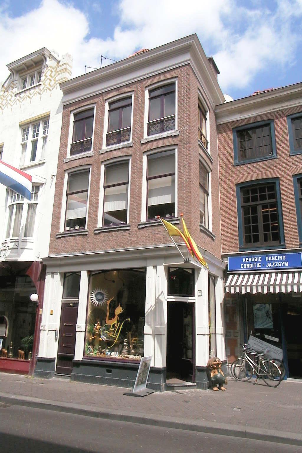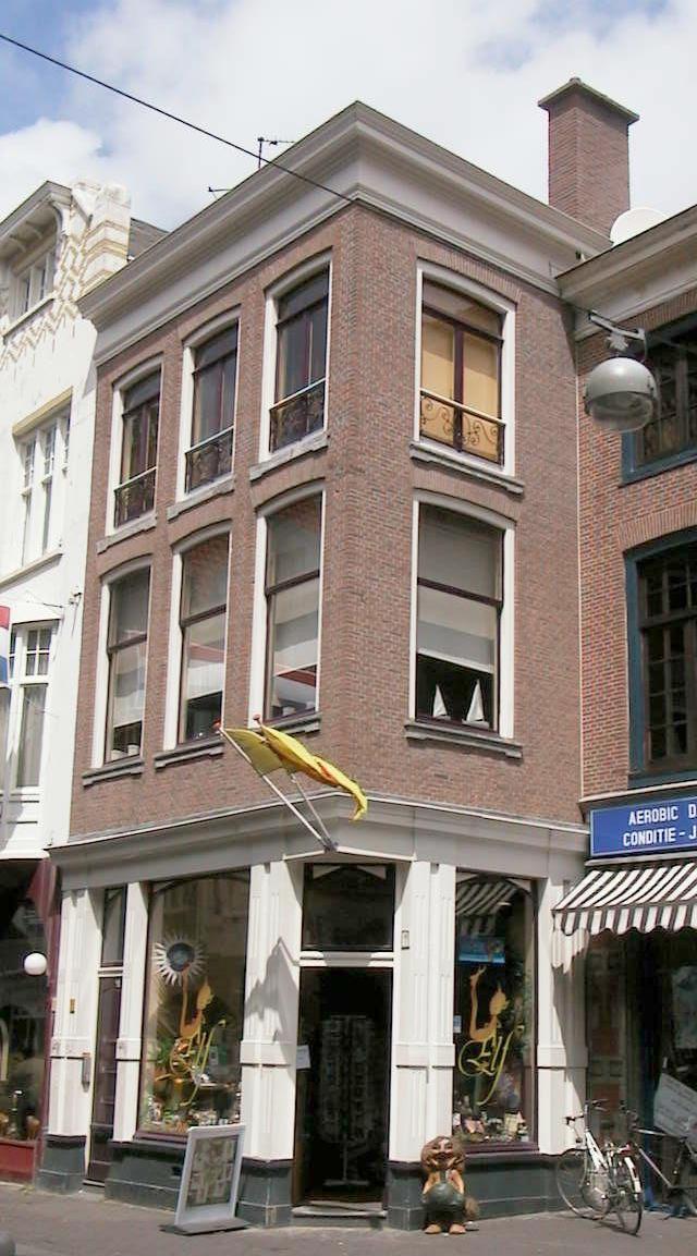18de-eeuws pand van drie bouwlagen met een schilddak. Breedte: drie vensterassen. In de bakstenen lijstgevels getoogde vensters met geprofileerde, laat-18de--eeuwse dorpels. Houten hoofdgestel. De winkelpui dateert uit het eerste kwart van de twintigste eeuw.