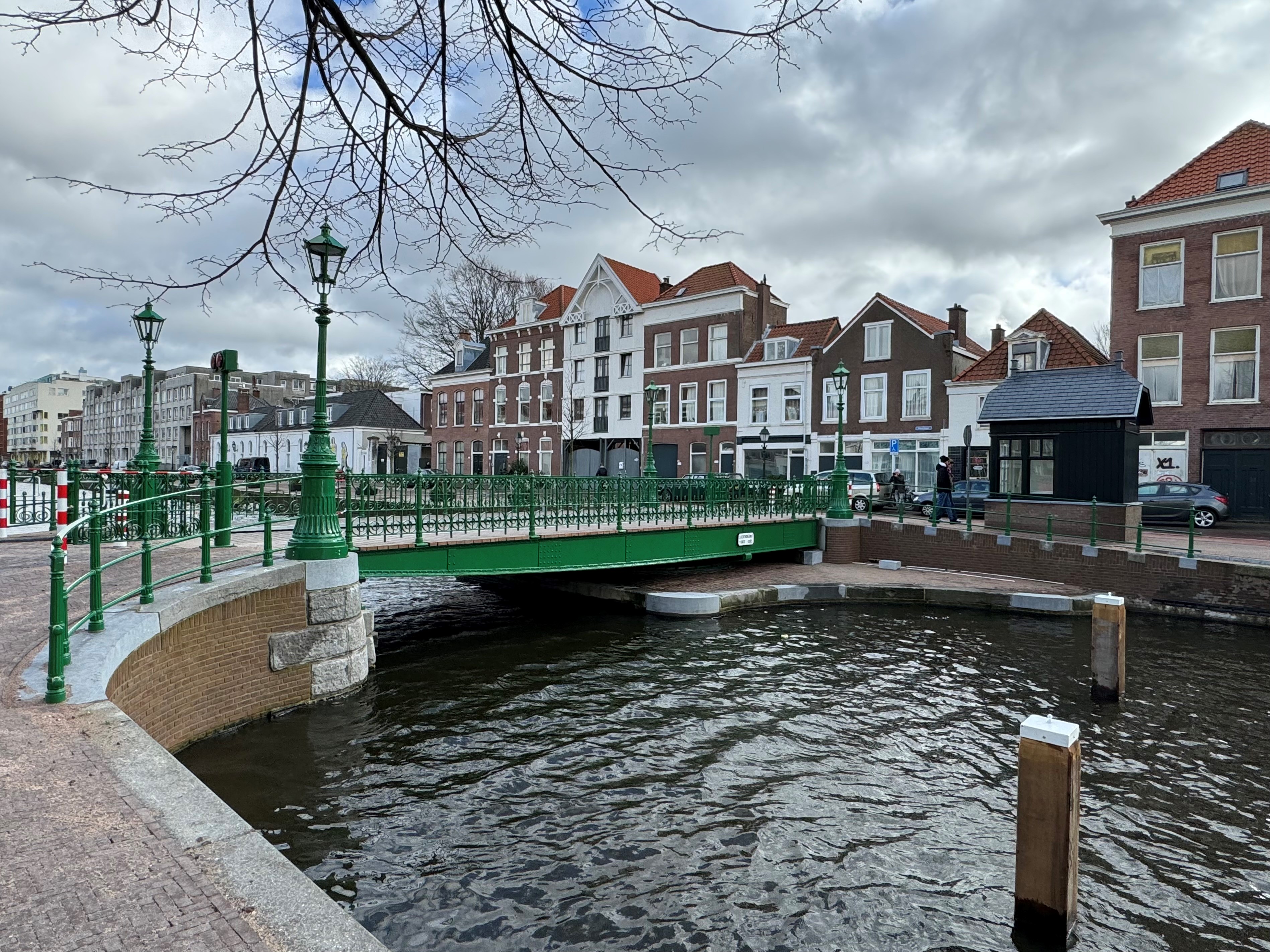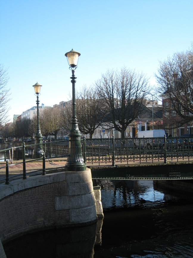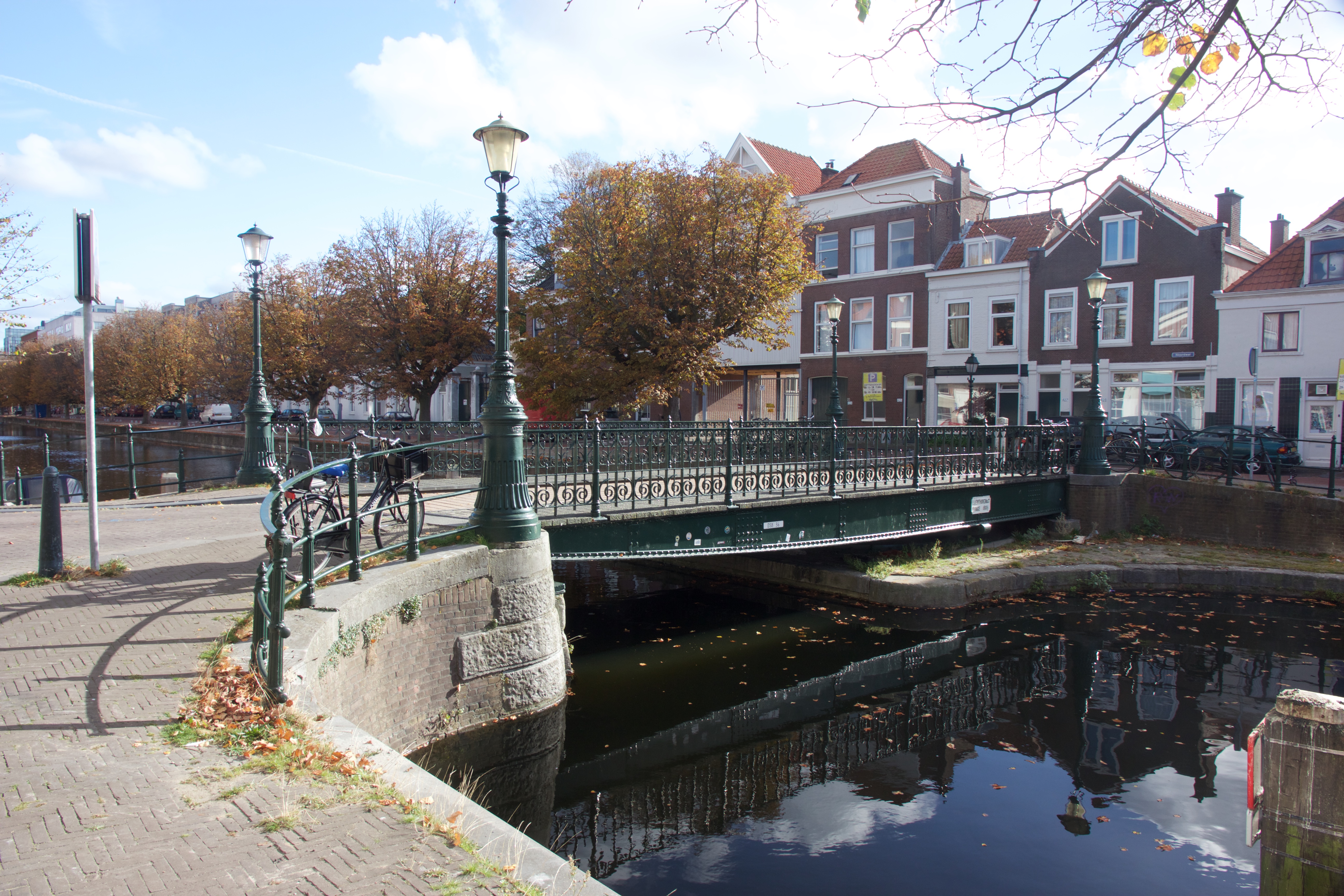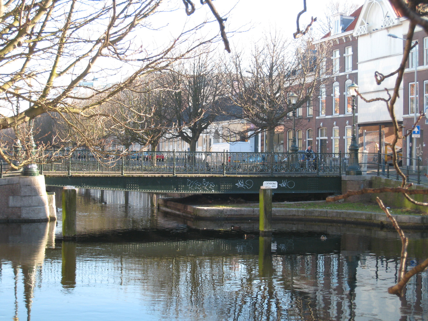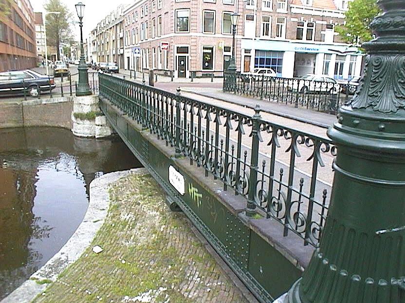 Gietijzeren brug, vervaardigd door de fa.Enthoven in 1885, de verbinding vormend tussen de Veenkade en de Noordwal. IJzeren balusters met rijk versierde hekken, vier sierlantaarns. Gemetselde bruggehoofden met hardstenen hoekmarkeringen. Gietijzeren balustraden op de bruggehoofden.