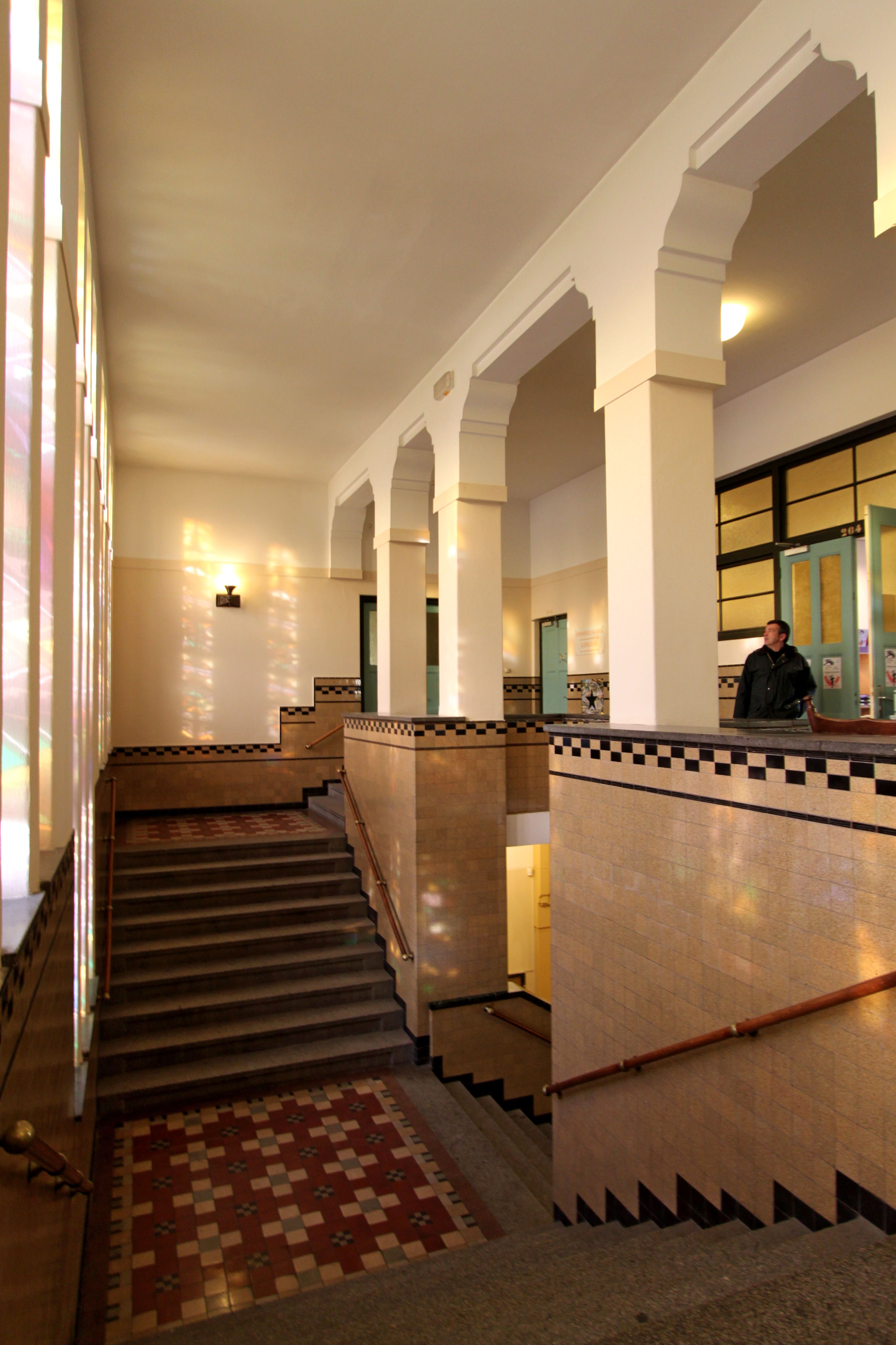 NB. De gymzaal uit 1953 en de fitnessruimte uit ca. 1992 zijn van bescherming uitgesloten.