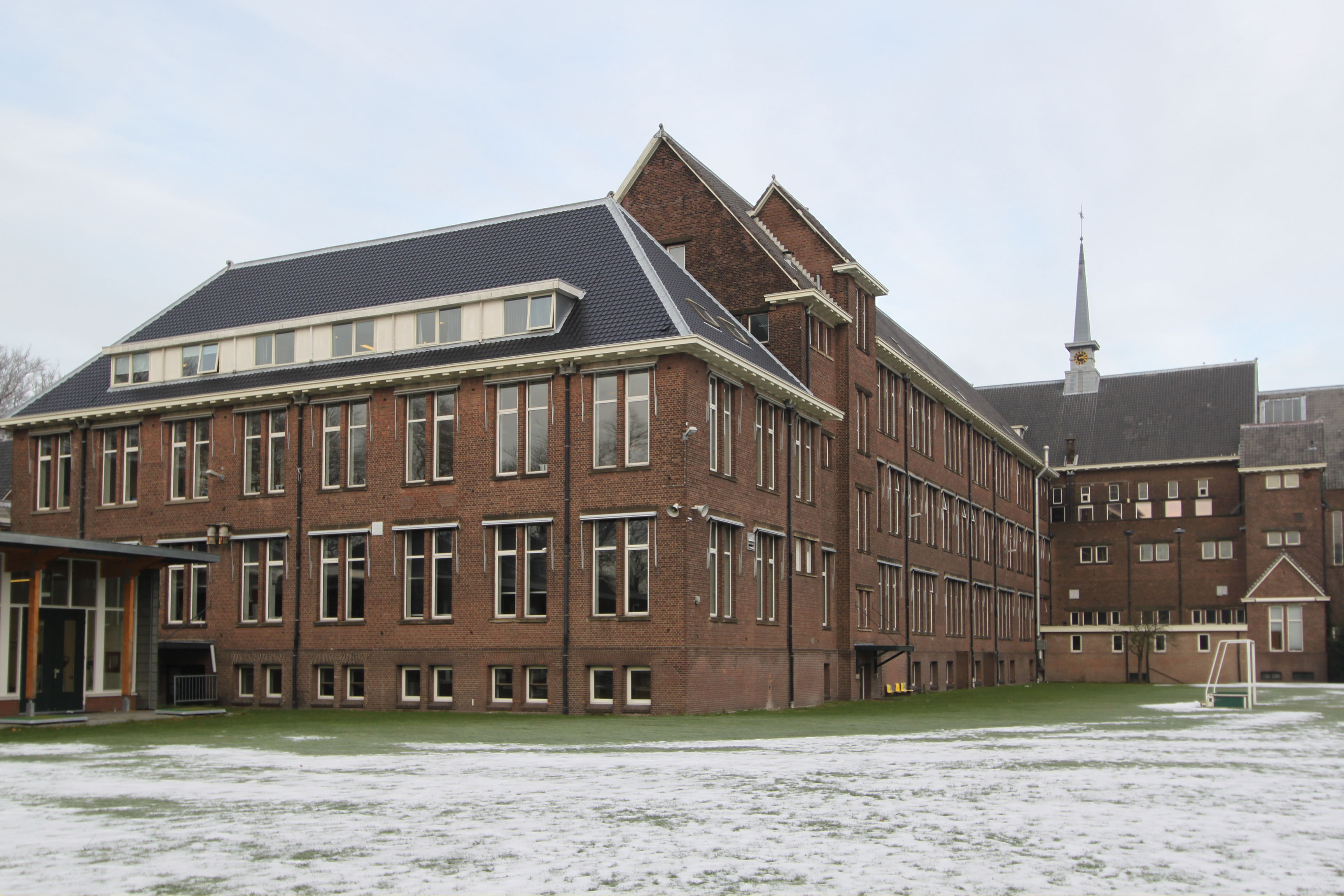 Het hoofdgebouw is gesitueerd aan de Oostduinlaan. Hier is onder meer de hoofdingang met monumentaal trappenhuis en rechts hiervan op de begane grond de aula en op de verdieping de voormalige kapel. De kapel is aan het exterieur te herkennen door de hoge spits op het zadeldak met in de onderbouw een uurwerk. In de lagere achterbouw (voorheen de sacristie) is in de voorgevel een natuurstenen beeld van Sint Aloysius opgenomen.