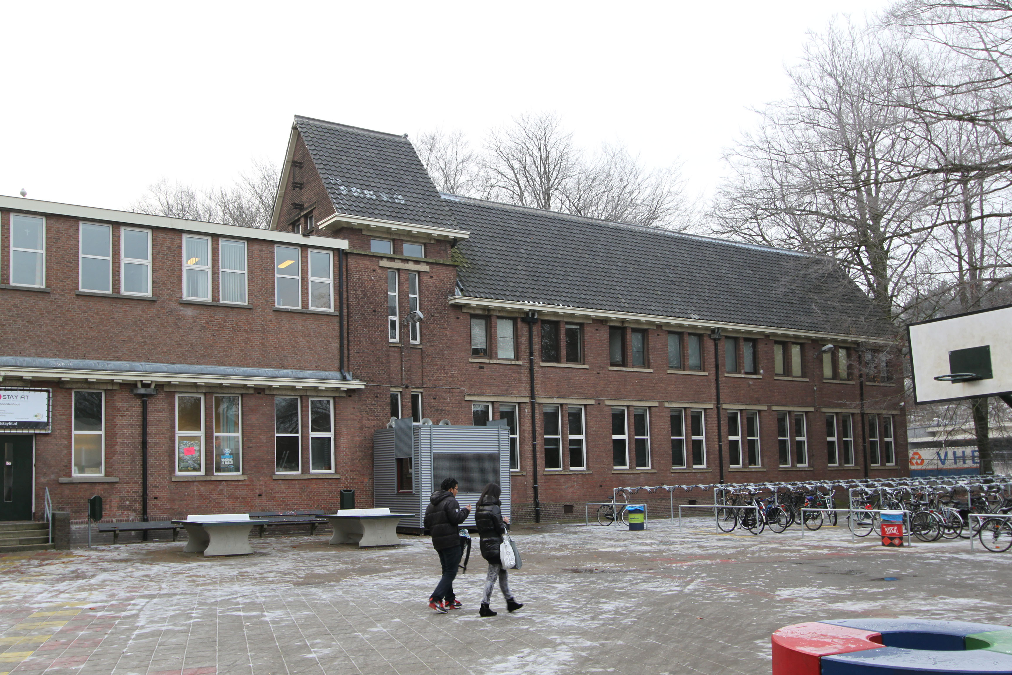 Haaks op het hoofdgebouw is een langgerekt, drie lagen hoog schoolgebouw. Dit volume vormt de hoofdopzet van de voor het onderwijs opgezette klaslokalen. Aan het einde ervan zijn diverse kleine bouwvolumen waaronder een onder mansardekap gesitueerd gymlokaal en een uitbreiding uit 1927.