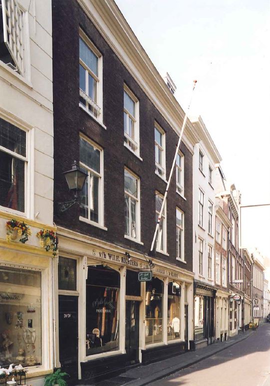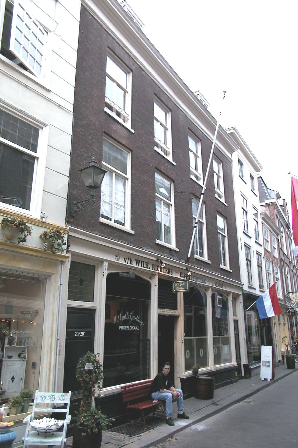 In oorsprong twee panden, samengetrokken achter een lijstgevel van midden 19e eeuws karakter ter breedte van vier vensterassen. Twee verdiepingen met t-vensters; twee parallel lopende schilddaken. De vensters van de tweede verdieping bezitten gietijzeren raamhekjes met meandermotief. Houten winkelpui, gedateerd 1877 op natuurstenen sokkel. Inwendig 19e eeuwse destilleerderij: ijzeren koelvat en koperen destilleervat met koperen helm en een houten filter; drie houten cognacvaten waarvan twee vervaardigd door de fa.Planat & Co. In deze ruimte een gietijzeren zuiltje ter ondersteuning van de balkenzolder van de eerste verdieping.