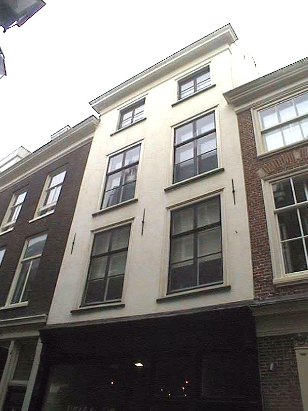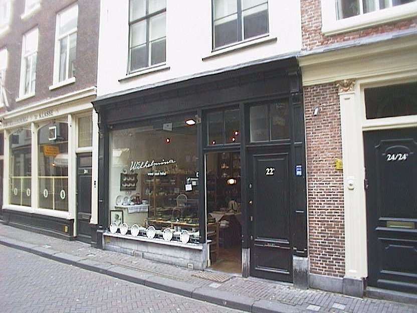 Pand met gepleisterde gevel onder rechte houten kroonlijst. Parterre voorzien van houten winkelpui, drie verdiepingen met schuifvensters in eenvoudige omlijstingen en dwars geplaatst zadeldak tussen puntgevels. Het in oorsprong 16e-17e eeuwse onderkelderde huis heeft een keldertrap uit de bouwtijd met hardstenen platen op de treden. De kelder met tongewelf wordt verlicht door een vloerluik nabij de voorgevel. De begane-grond bezit een vloer van eiken delen en een zoldering met moer- en kinderbalken. Spiltrap uit de bouwtijd. In de moerbalk boven de spiltrap een getoogd kalf. Op de eerste verdieping een balkenzolder met moer- en kinderbalken en sleutelstukken. In de scheidingswand tussen nr 22 en 24 vakwerk en houten deuromlijsting uit de bouwtijd. Ook de tweede verdieping heeft in de scheidingswand vakwerk, alsmede een balkenzoldering. De moerbalk boven de spiltrap bezit hier, evenals op de begane-grond, een getoogd kalf.