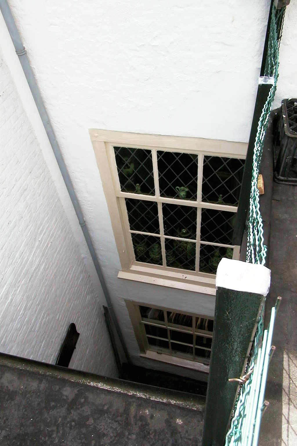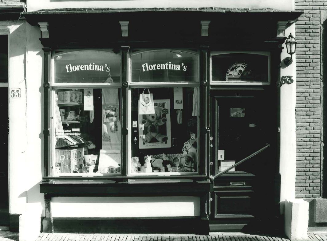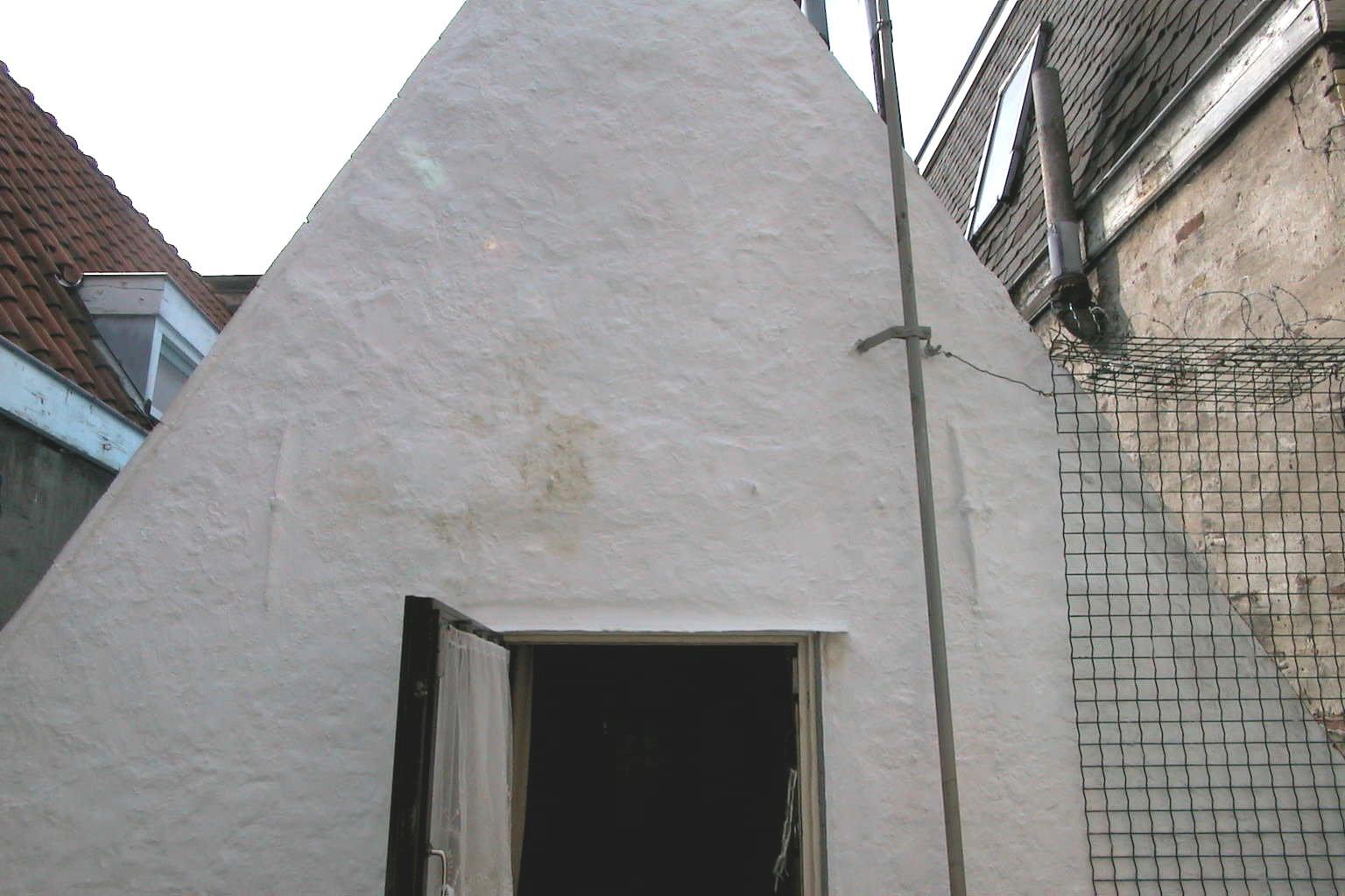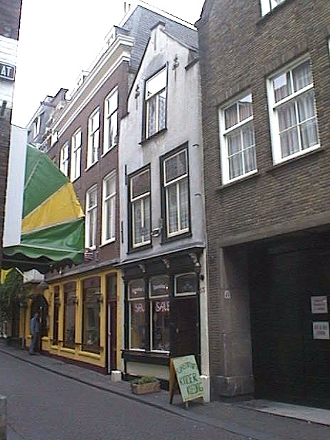 Pand uit de 17e eeuw met aan de voorzijde een tot puntgevel gewijzigde, gepleisterde trapgevel, waarvan de natuurstenen geprofileerde dekplaten opzij en op de top bewaard zijn gebleven. Twee sierankers, houten winkelpui, 3e kwart 19e eeuw. Aan de achterzijde een gepleisterde puntgevel.