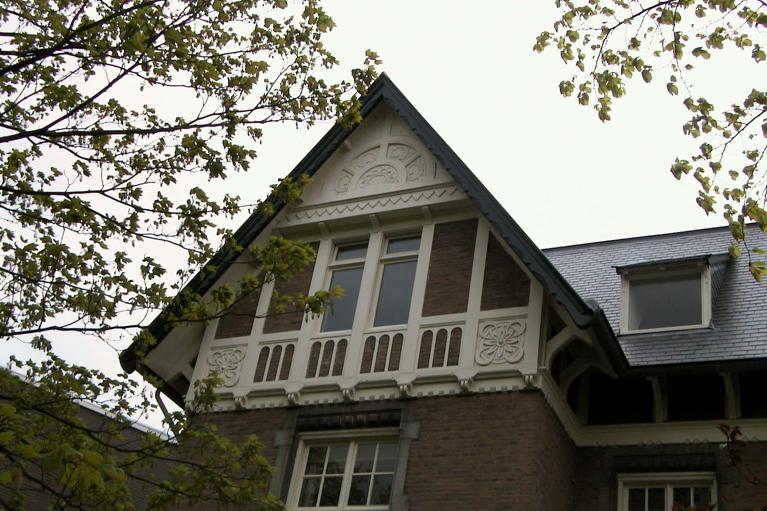 Het pand met sterk verspringende rooilijn bestaat uit parterre, verdieping en kapverdieping onder een met leien gedekte samengestelde kap. De gevels in schoon metselwerk hebben risalerende partijen met hoge puntgevels. In de puntgevels is door de toepassing van vakwerk de invloed van de chaletarchitectuur merkbaar. Houtsnijwerk in de vorm van bloemmotieven geven de topgevels een extra accent. Tegen drie van de vier gevels bevinden zich rechthoekige en veelhoekig uitgebouwde erkers met balkons. De hoek op de scheiding Parkweg-Van Stolkweg wordt gevormd door een driezijdig bouwblok over twee bouwlagen, waarboven een balkon met balustrade. Tegen de middenrisaliet van de achtergevel is een driezijdige hardstenen erker. De vensters en deuren van de parterre en verdieping bezitten zorgvuldig gedetailleerde hardstenen omlijstingen. De op de chaletbouw geinspireerde kapverdieping met overstekende dakranden heeft rijk houtsnijwerk. De dakgoot wordt gedragen door houten korbelen. De balcons hebben smeedijzeren hekken in Jugendstilvormen tussen hardstenen postamenten. De hoofdopzet van het interieur wordt bepaald door een trappenhuis dat uitkomt op een centraal gelegen achthoekig vide met gaanderijen op de verdiepingen. De stucplafonds bezitten hier eenvoudige profiellijsten. Op de begane grond worden de wanden van de vide omgeven door een eikehouten lambrizering met panelen. Langs een van de wanden is een schouw met rijke gesneden houten neo-renaissance ommanteling. De kamer-en-suite op deze bouwlaag aan de westzijde is doorbroken maar bezit nog veel authentieke interieurafwerkingen. De voorste kamer, oorspronkelijk een kantoor, is geheel in imitatie 17e-eeuwse vormgeving uitgevoerd met moer- en kinderbinten en voorzien van voluutconsoles. De wanden hebben een hoge houten lambrizering.Tegen een der lange wanden is een imitatie 17e-eeuwse hardstenen schouw. In de eikenhouten schouwbalk zijn diermotieven in cirkelvormige omlijstingen gesneden. De achterkamer, oorspronkelijk een zitkamer, is veel soberder uitgevoerd met een eenvoudig stucplafond en een lage houten lambrizering. De aankleding van het vertrek aan de zuidwestzijde, oorspronkelijk de eetzaal, is in 1910 door architect A. Broese van Groenou met een serre uitgebreid. De interieurafwerking hiervan is donker en zwaar. Hoge houten lambrizeringen met vierkante houten panelen omgeven de wanden. Tegen een van de korte zijden is een marmeren schouw met een in neo-renaissance motieven rijke eikenhouten ommanteling. De uitgespaarde bergruimte in de lange zijde is eveneens in rijk houtsnijwerk uitgevoerd, onder meer met twee zuiltjes voorzien van Corintische kapitelen. Het opvallende stucplafond wordt gevormd door een herhaling over de gehele oppervlakte van een geprofileerd vier-lobbig siermotief.