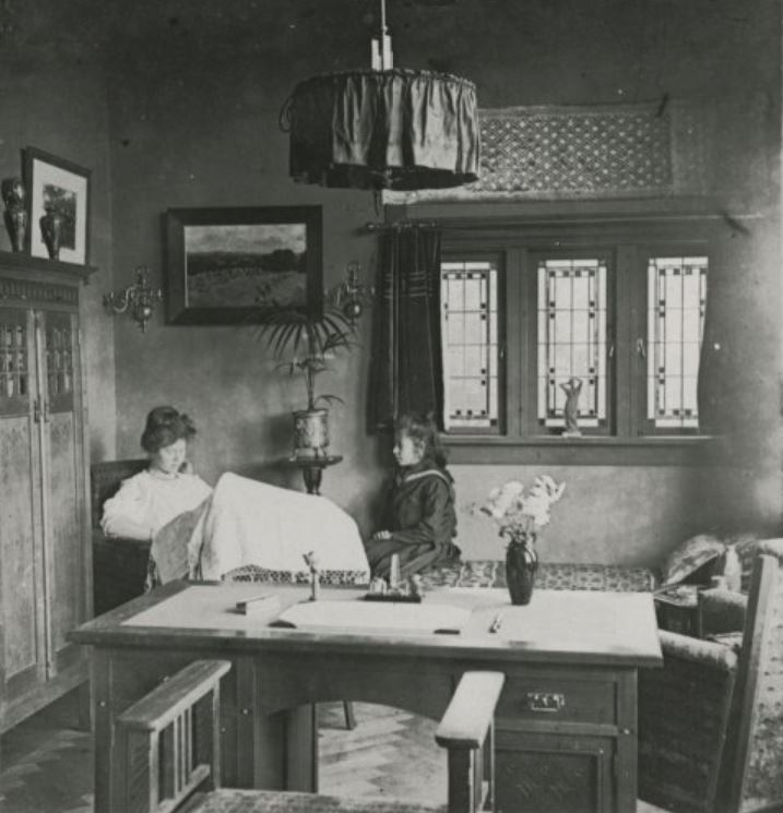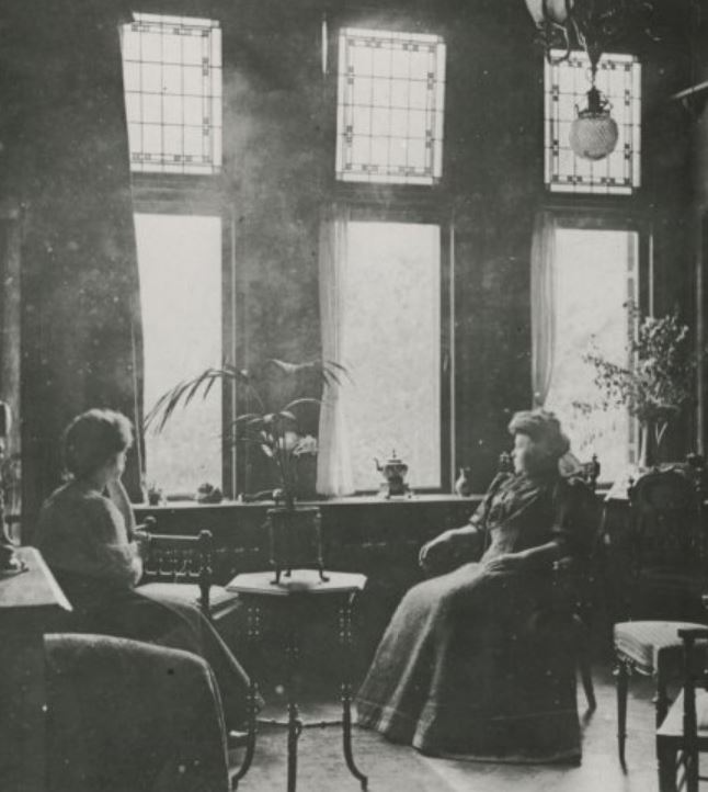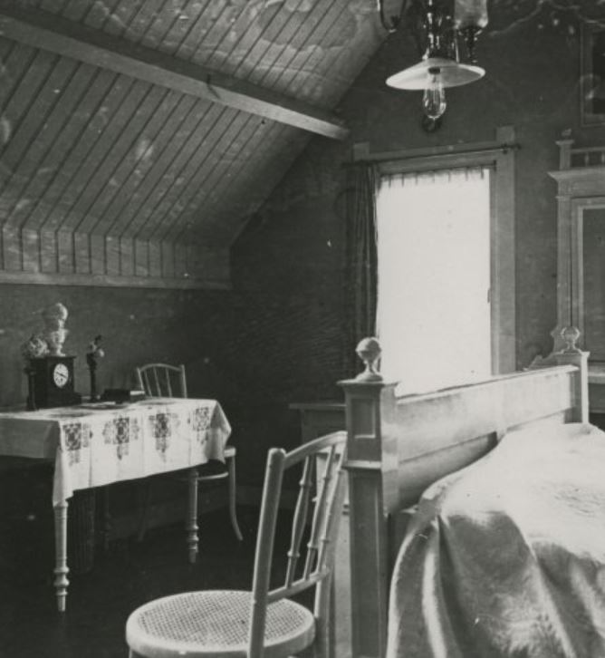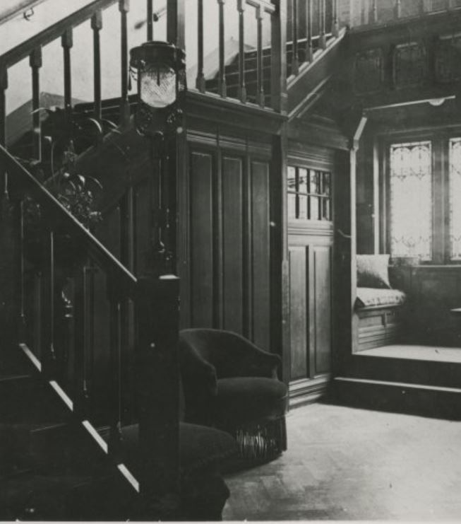 Inwendig vormt een centrale hal het middelpunt waar omheen vertrekken gegroepeerd zijn. Aan de buitenzijde is de centrale hal met trappehuis waarneembaar door de lantaarn op het dak. Het interieur is gaaf bewaard en omvat onder meerkamers met betimmeringen, stucplafonds, tegels en glas-in-lood uit de bouwtijd.
