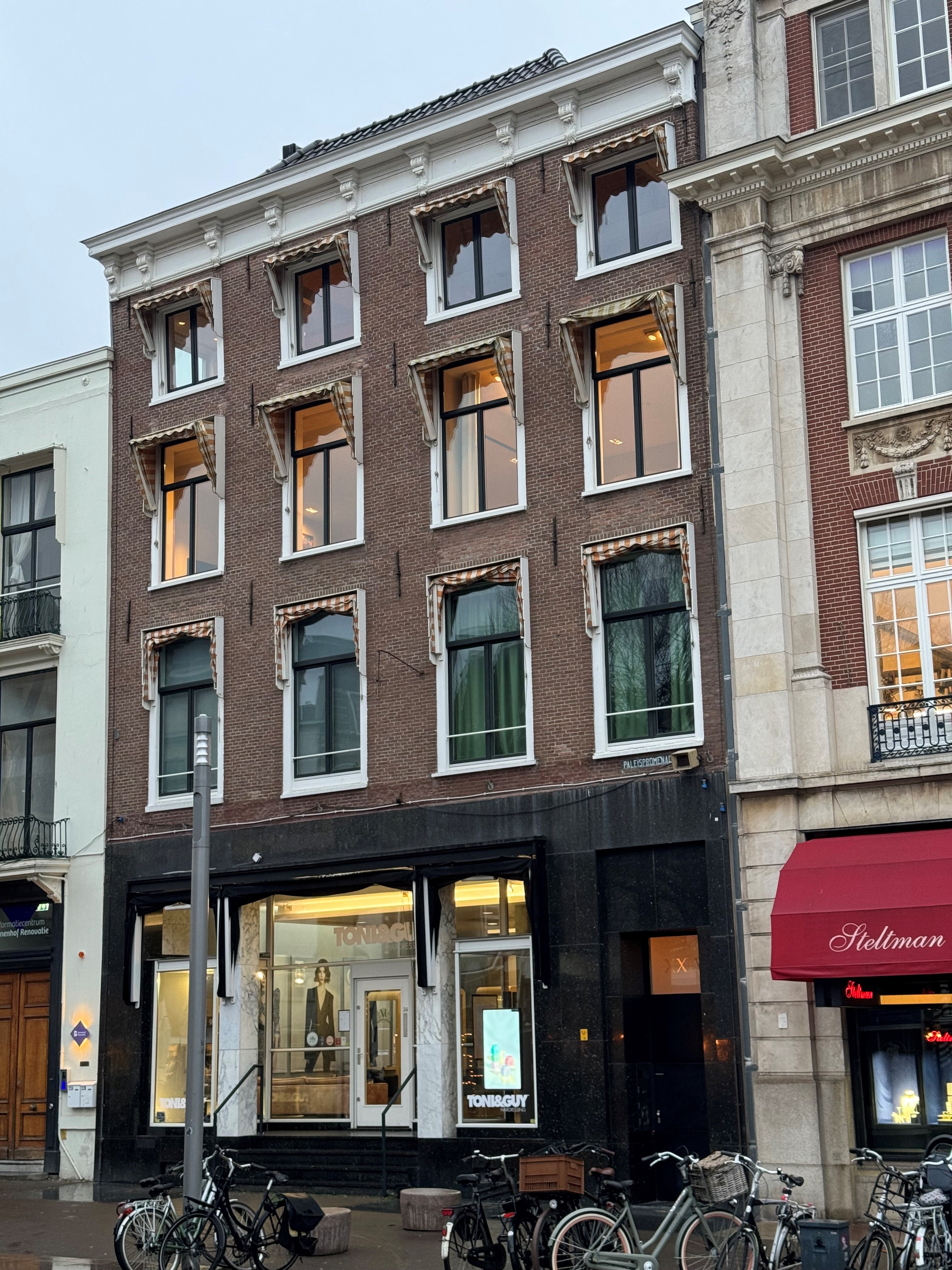 Pand met Lodewijk XIV gevel met kroonlijst op gesneden consoles, onderpui gemoderniseerd.