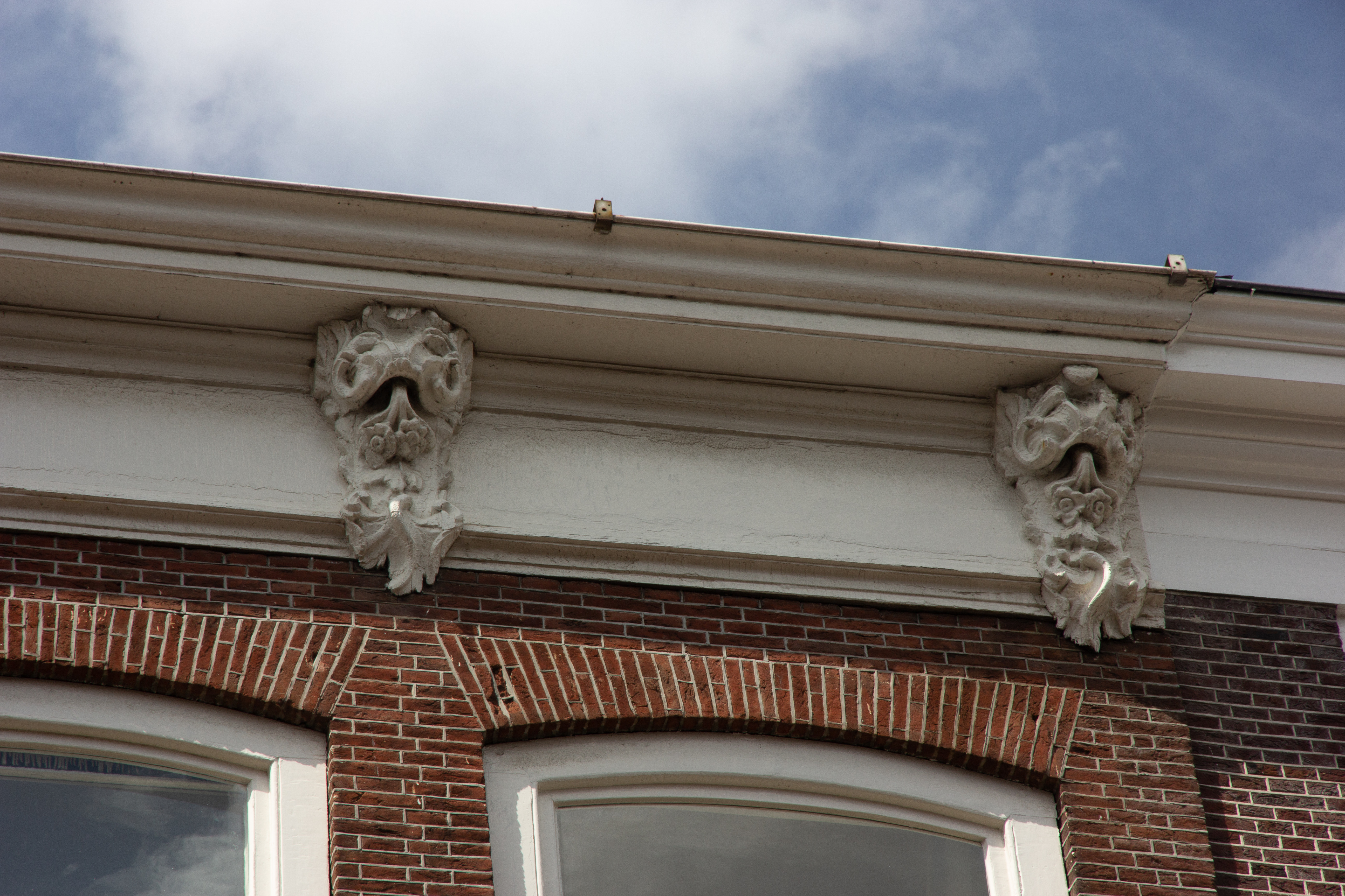 Smal en diep onderkelderd pand met achttiende-eeuwse lijstgevel.