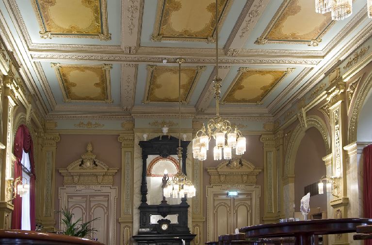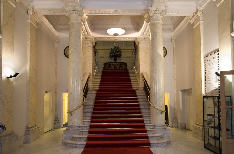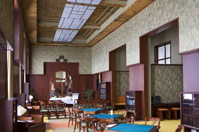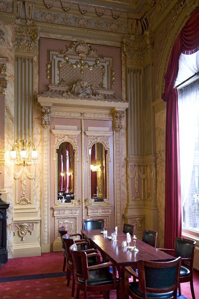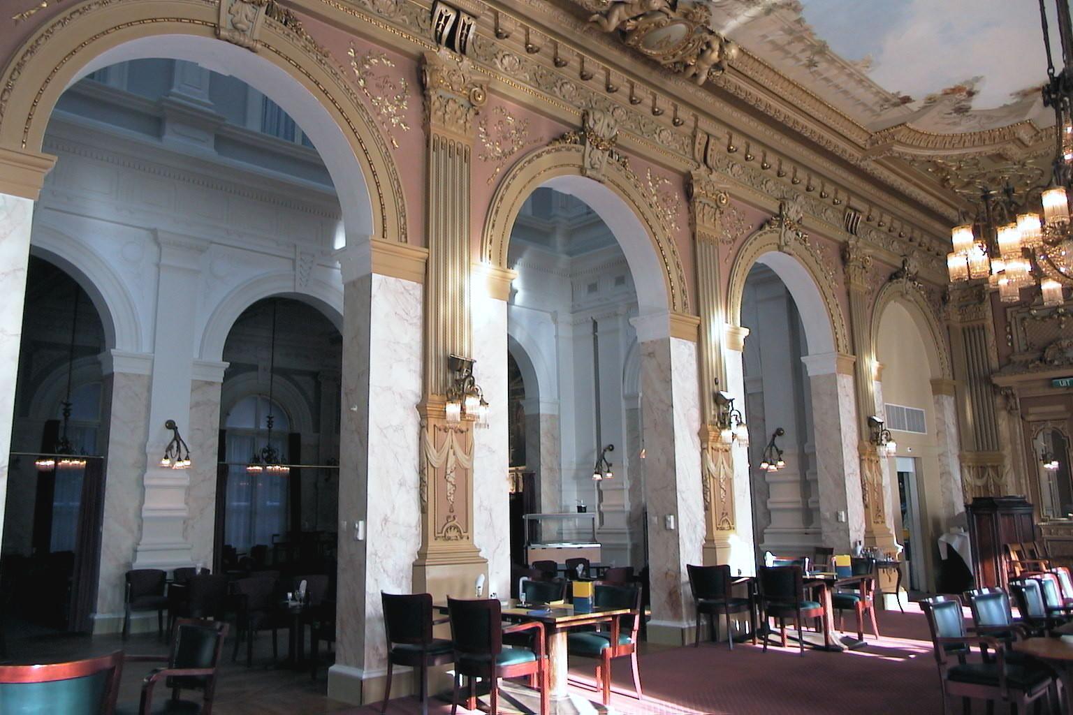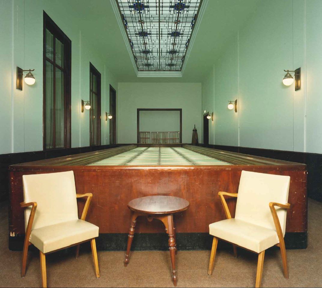 Fors, 12 traveeën breed bouwwerk van twee verdiepingen op een laag basement, geblokte pilaster tussen de vensters en om de ingangstravee - in 1856 gebouwd door architect C.Outshoorn, door architect J.Mutters in 1900 uitgebreid.