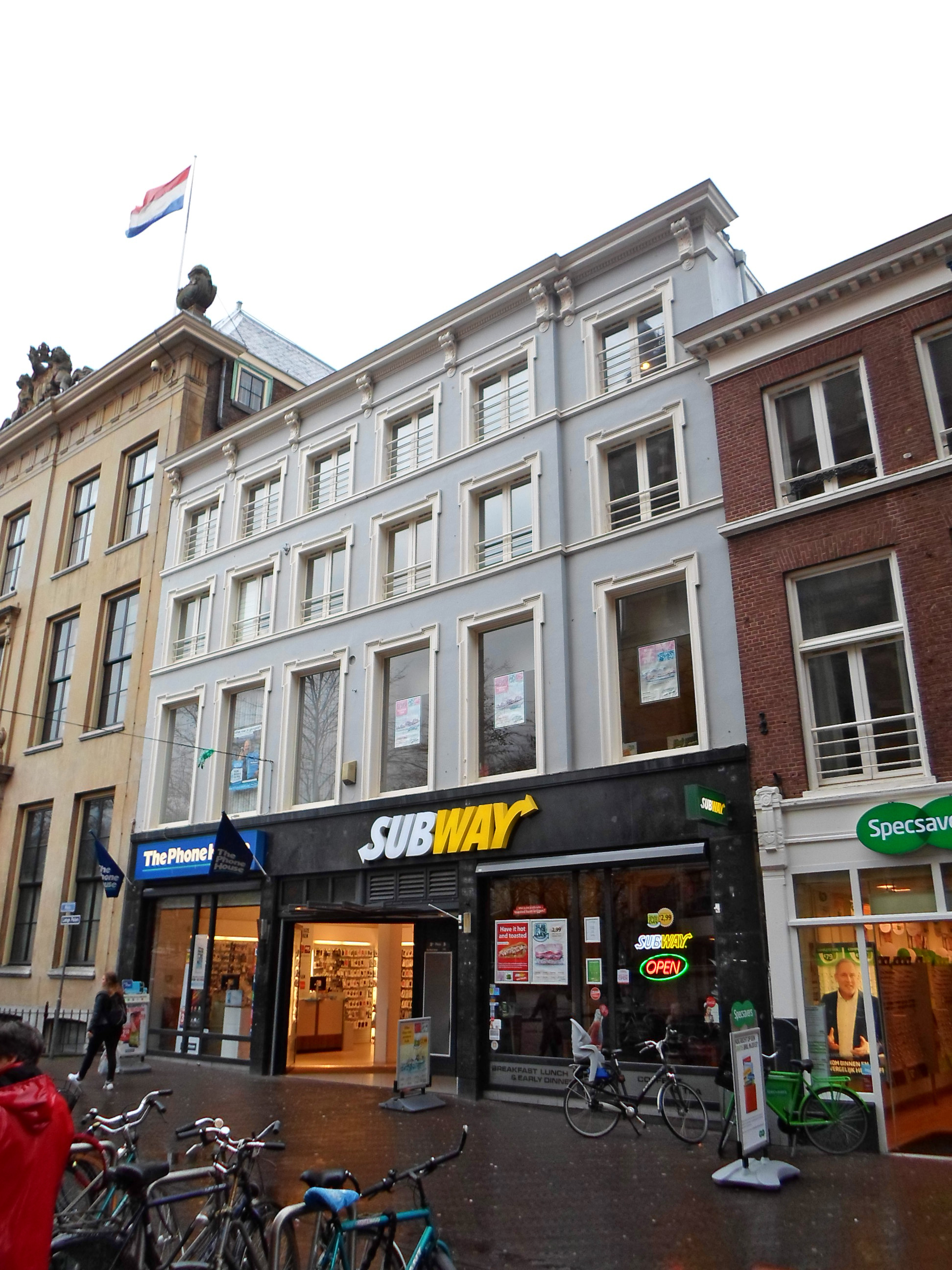 Het Plein dateert in zijn huidige omvang uit 1631 toen naar planen van Constantijn Huygens de grafelijke moestuinen werden veranderd in een monumentaal stadsplein. Aan de zuidzijde van het Plein aansluitend op de bebouwing van de Lange en Korte Poten verrezen naast enkel rijke patriciërswoningen ook herenhuizen van meer bescheiden omvang. Rond 1850 doet het winkelconcept zoals wij dat nu kennen haar intrede en worden veel woonhuispuien in de bestaande bebouwing vervangen door winkelpuien. De voortschrijdende cityvorming van de binnenstad en daarmee het alsmaar belangrijker worden van de winkelfunctie voor de zuidzijde van het Plein zorgt ervoor dat vanaf 1875 veel van de oude panden wordt gesloopt of zodanig verbouwd dat er sprake is van een ware metamorfose. De nieuwe winkelpanden zijn veelal hoger en laten de rijke schakering zien van de snel opvolgende architectuurstijlen vanaf 1850. Plein 3-3a is hiervan een goede representant. De gepleisterde in eclectische stijl vormgegeven lijstgevel heeft op de verdiepingen nog de oorspronkelijke geprofileerde kozijnen met omgezette hoeken aan de bovenzijde. Het raamhout is op de eerste en tweede verdieping niet meer aanwezig. De geprofileerde kroonlijst bezit rijk gesneden houten consoles.. De winkelpui op de begane grond is meerdere malen gewijzigd en thans voorzien van een moderne invulling.