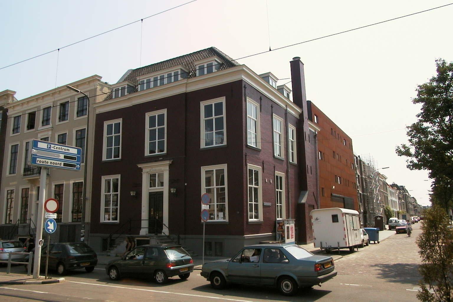 Hoekpand uit de eerste helft van de 18e eeuw met rechte kroonlijst op hardstenen plint en dito stoep.