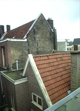 Pand met 18e eeuwse gevel met rechte kroonlijst, ingang met pilasterstelling.